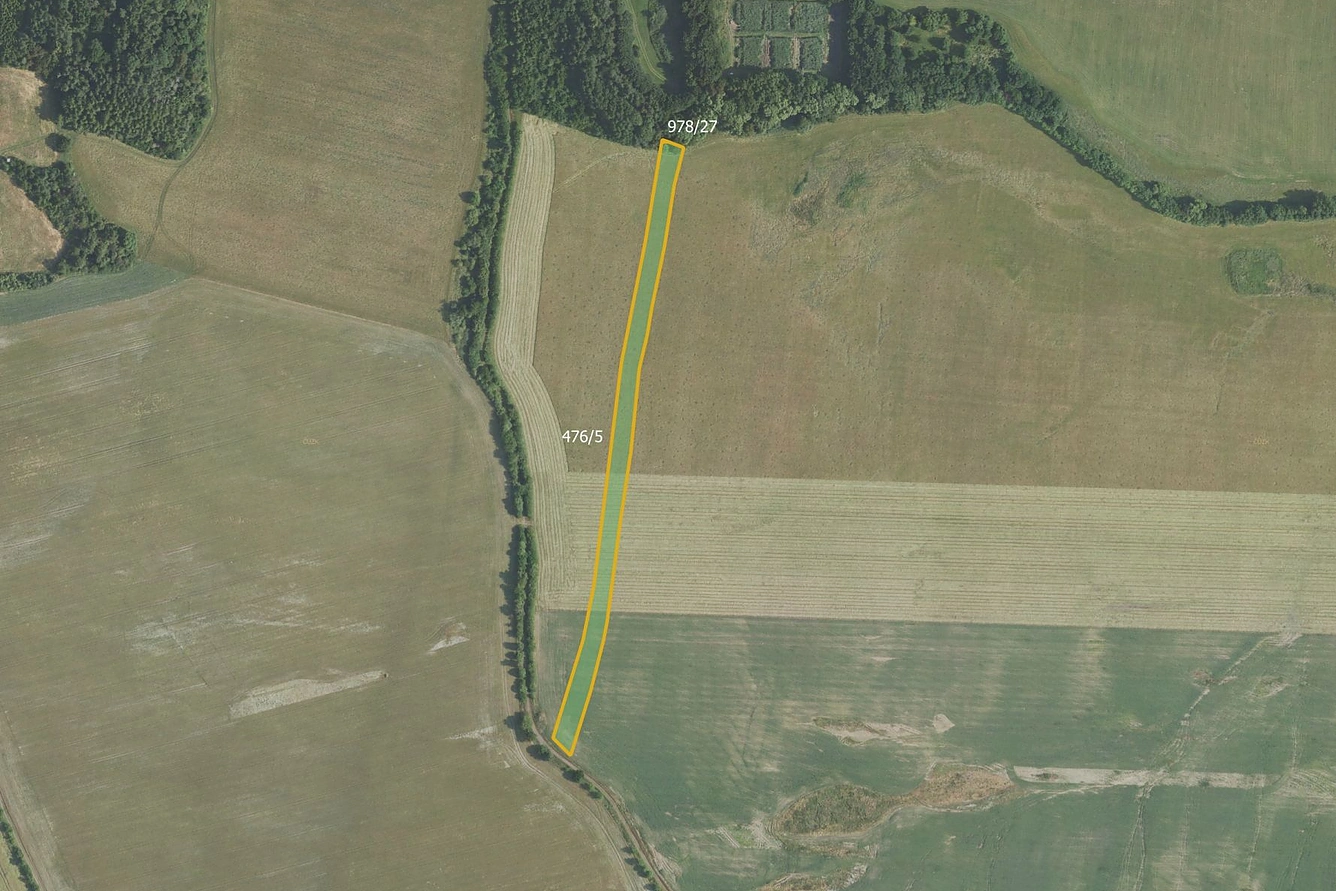 parc. č. 476/5 orná půda o výměře 7 646 m, jejíž součástí je navazující část vodní plochy (parc. č. 978/27) o výměře 3 m