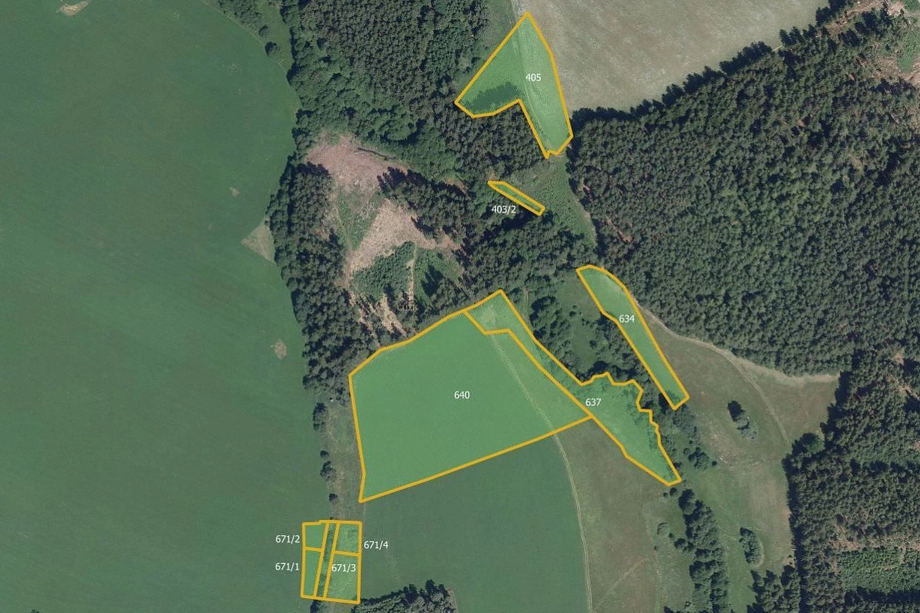 Předmětem prodeje jsou parc. č. 403/2, 405, 634, 637, 640, 641/19, 671/1, 671/2, 671/3 a 671/4 zapsané na LV 405 v KÚ Chlum u Hlinska.