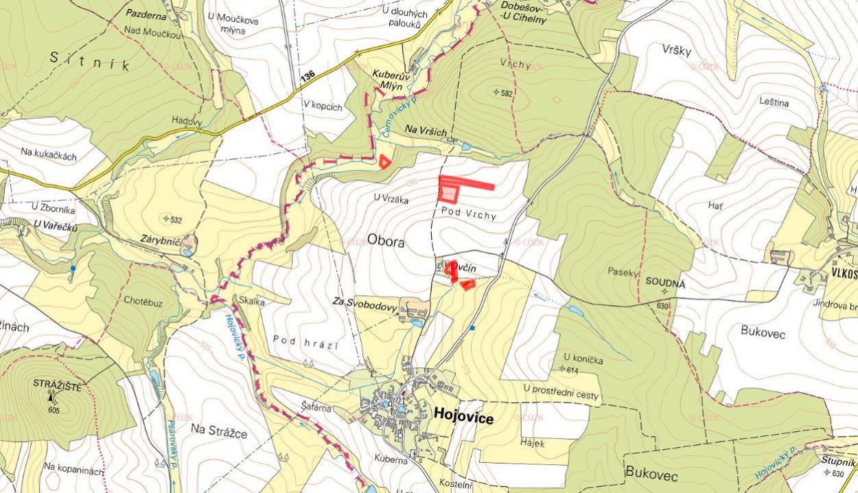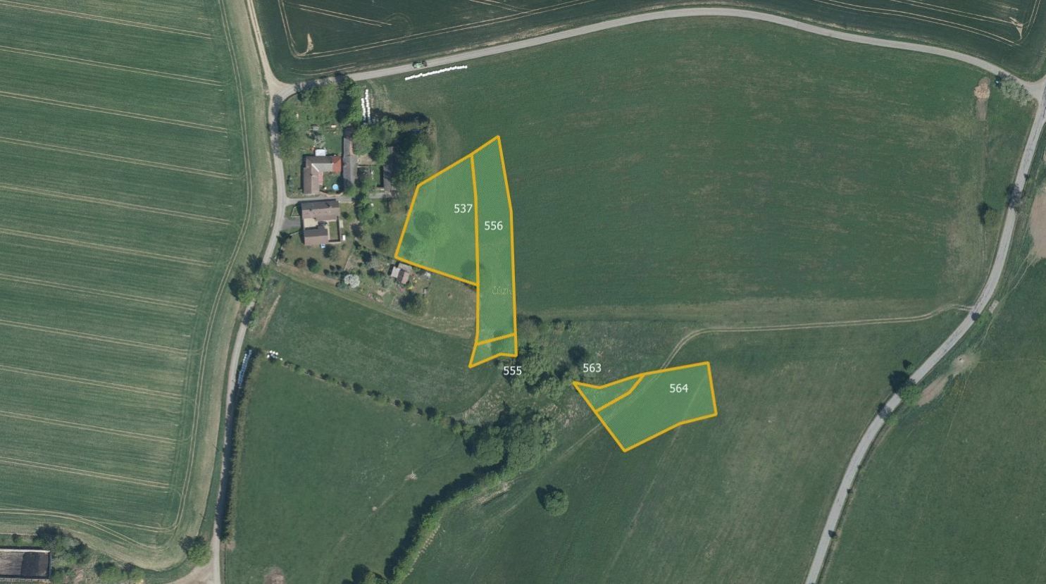 Pozemky se nacházejí v katastru obce Hojovice a tvoří je parcely číslo 556, 563, 555, 531, 516, 699, 564 a 537.