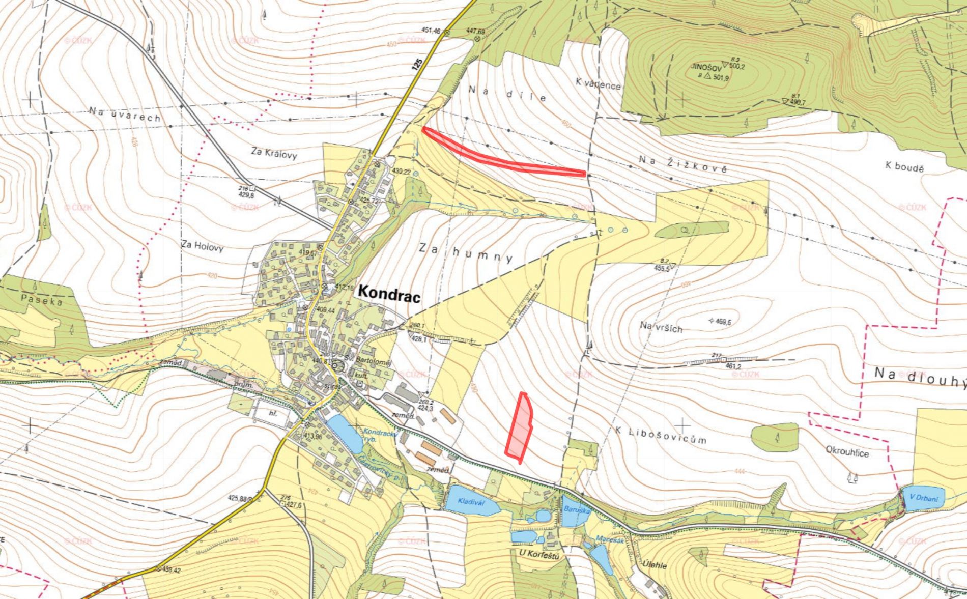 Nabízím k prodeji zemědělské pozemky ve výlučném vlastnictví o celkové výměře 18 422 m v katastrálním území Kondrac, okres Benešov. Pozemky jsou zapsány na listu vlastnictví č. 109 a tvoří je parcely č. 188/4 a 452/1, obě vedené jako orná půda.