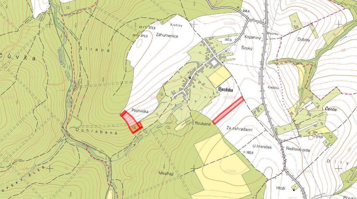 Nabízím k prodeji soubor pozemků ve výlučném vlastnictví o celkové výměře 16 519 m v katastrálním území Újezdsko, obec Kostelany, okres Kroměříž. Pozemky jsou zapsány na listu vlastnictví č. 350 a tvoří je 5 parcel.