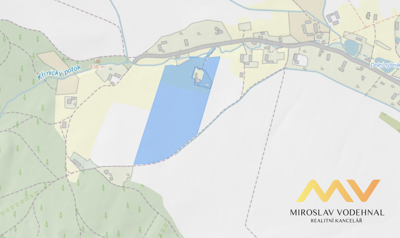 K prodeji nabízíme soubor pozemků o celkové výměře 161 356 m², zapsaných na jednom Listu vlastnictví, nacházejících se v katastrálním území Křinice na Broumovsku, okr. Náchod. Pozemky jsou v katastru vedeny jako: