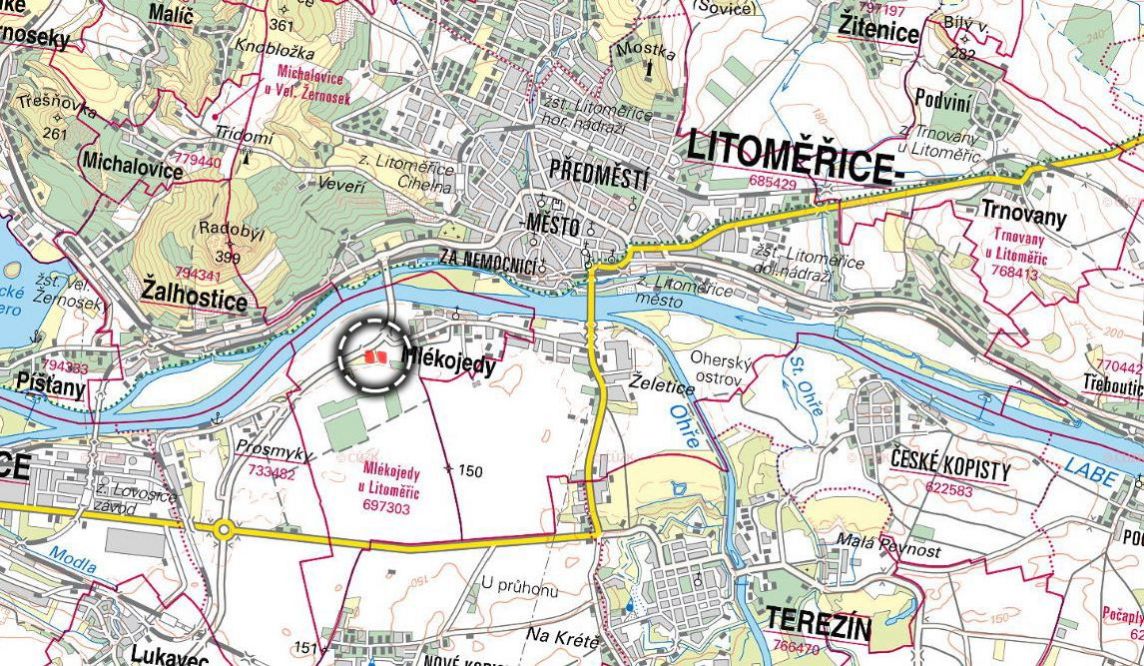Nabízím k prodeji zemědělské pozemky ve výlučném vlastnictví o celkové výměře 4 425 m v katastrálním území Mlékojedy u Litoměřic, okres Litoměřice. Pozemky jsou zapsány na listu vlastnictví č. 6 a jedná se o následující parcely: