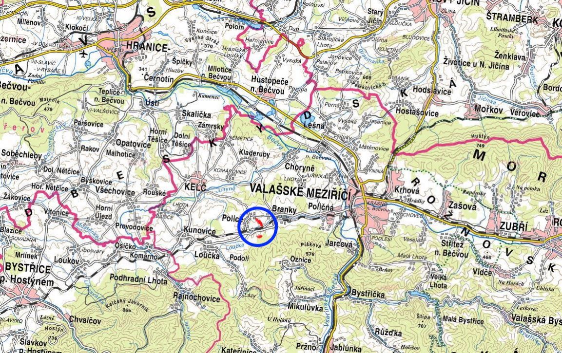 K prodeji je 100% vlastnictví na pozemcích parc. č. 5913, 5910, 5565, 5564, 5423, 5408, 5407 a 5399 zapsaných na LV 502 v KÚ Police u Valašského Meziříčí.