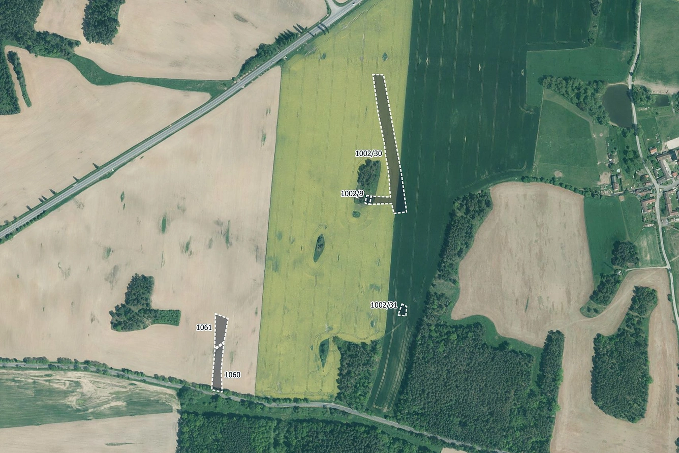 Pozemky jsou vedeny pod čísly 49, 52, 64/1, 100/9, 104/2, 107/1, 160/12, 160/29, 160/30, 168/5, 170/9, 172/2, 182/7, 192/1, 194/6, 238/1, 406/34, 406/40, 410, 485/4, 505/6, 531/2, 545/3, 558/3, 559/15, 584, 714/10, 720/6, 809/1, 1002/9, 1002/30, 1002/31, 1060, 1061, 1143/10, 1149/3, 1151/13, 1156/28, 1158/24 a 1158/25.