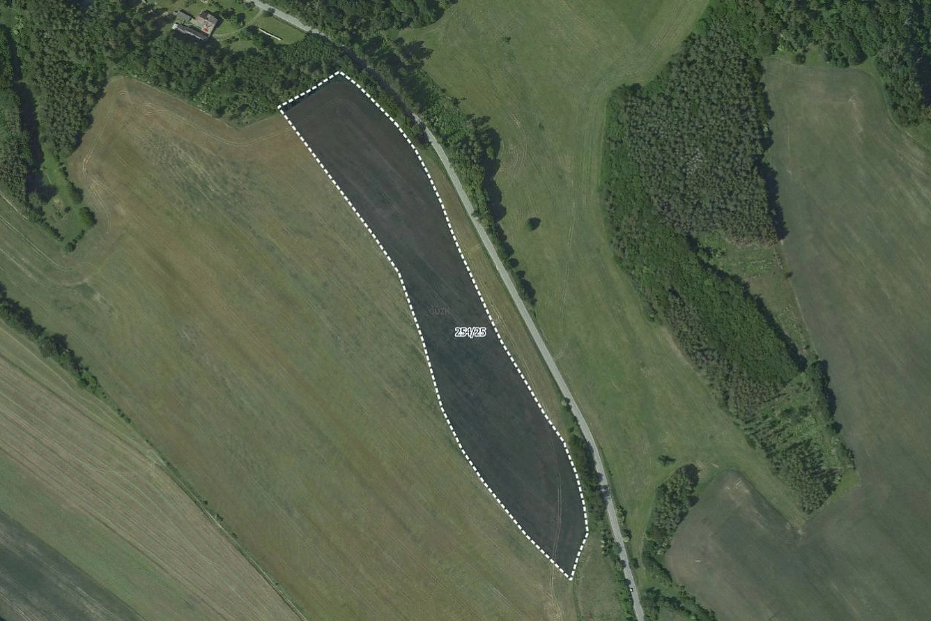 Její celková výměra je 32 996 m2 a vlastník na ní prodává 21 997 m2. Zapsaná je na listu vlastnictví 189 pod číslem parcely 254/25.