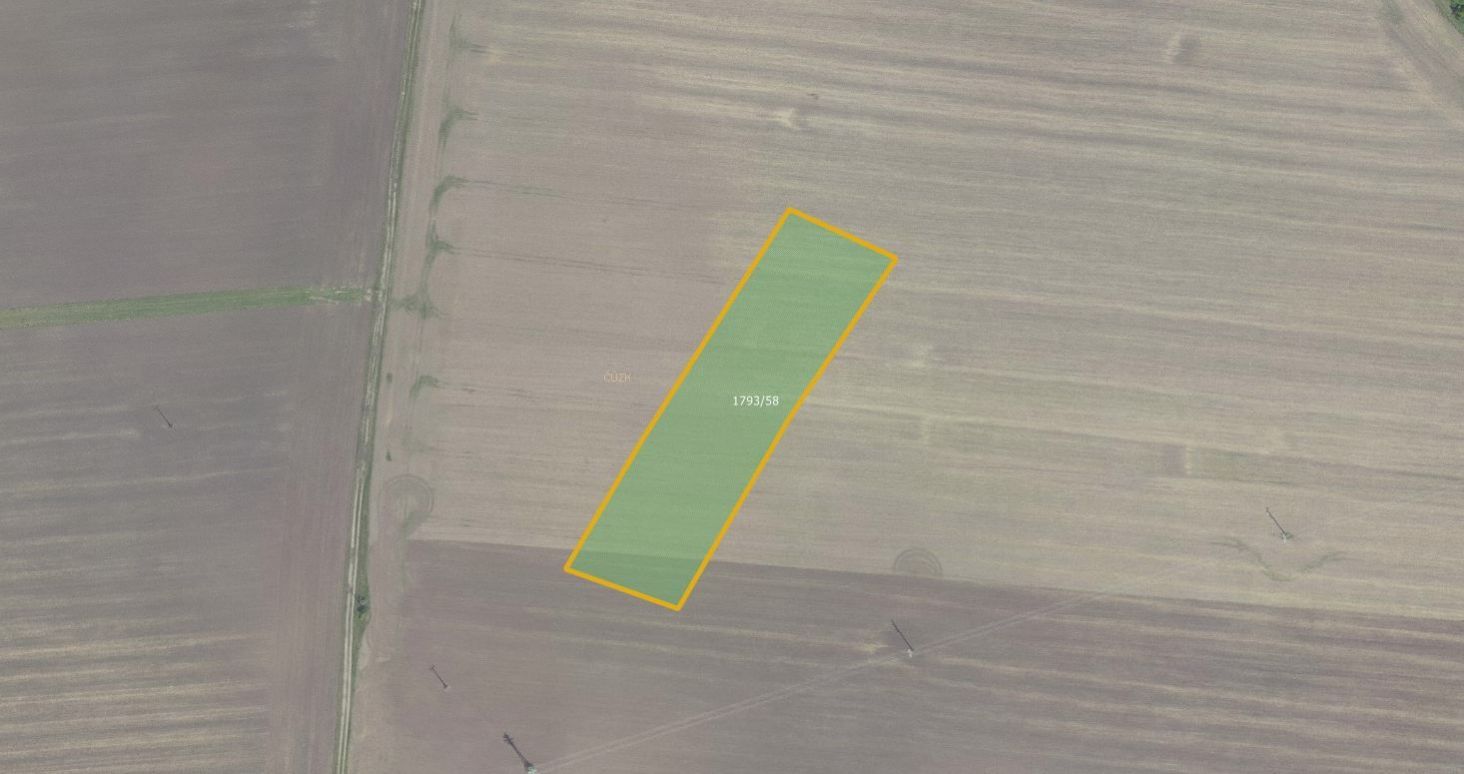 Pozemek je evidován na listu vlastnictví č. 1694 jako parcela č. 1793/58. Celková výměra parcely činí 6 008 m a celý pozemek je veden jako orná půda. Položen je v rovině.