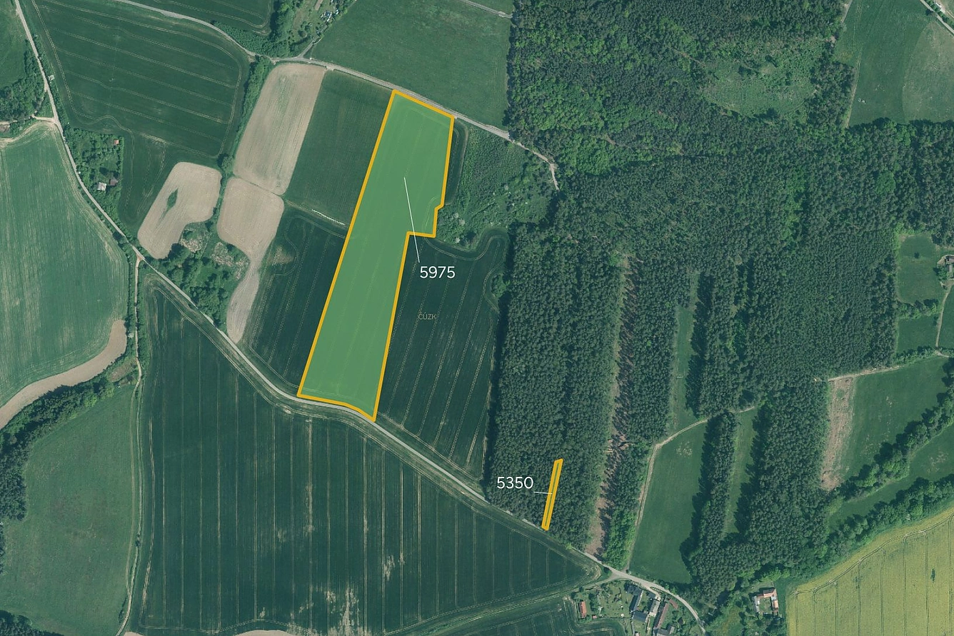 Společná výměra parcel je 38 449 m. Vlastník prodává 28 837 m, předně orné půdy, okrajově blízkého lesa. Pozemek orné půdy je přístupný po cestě.