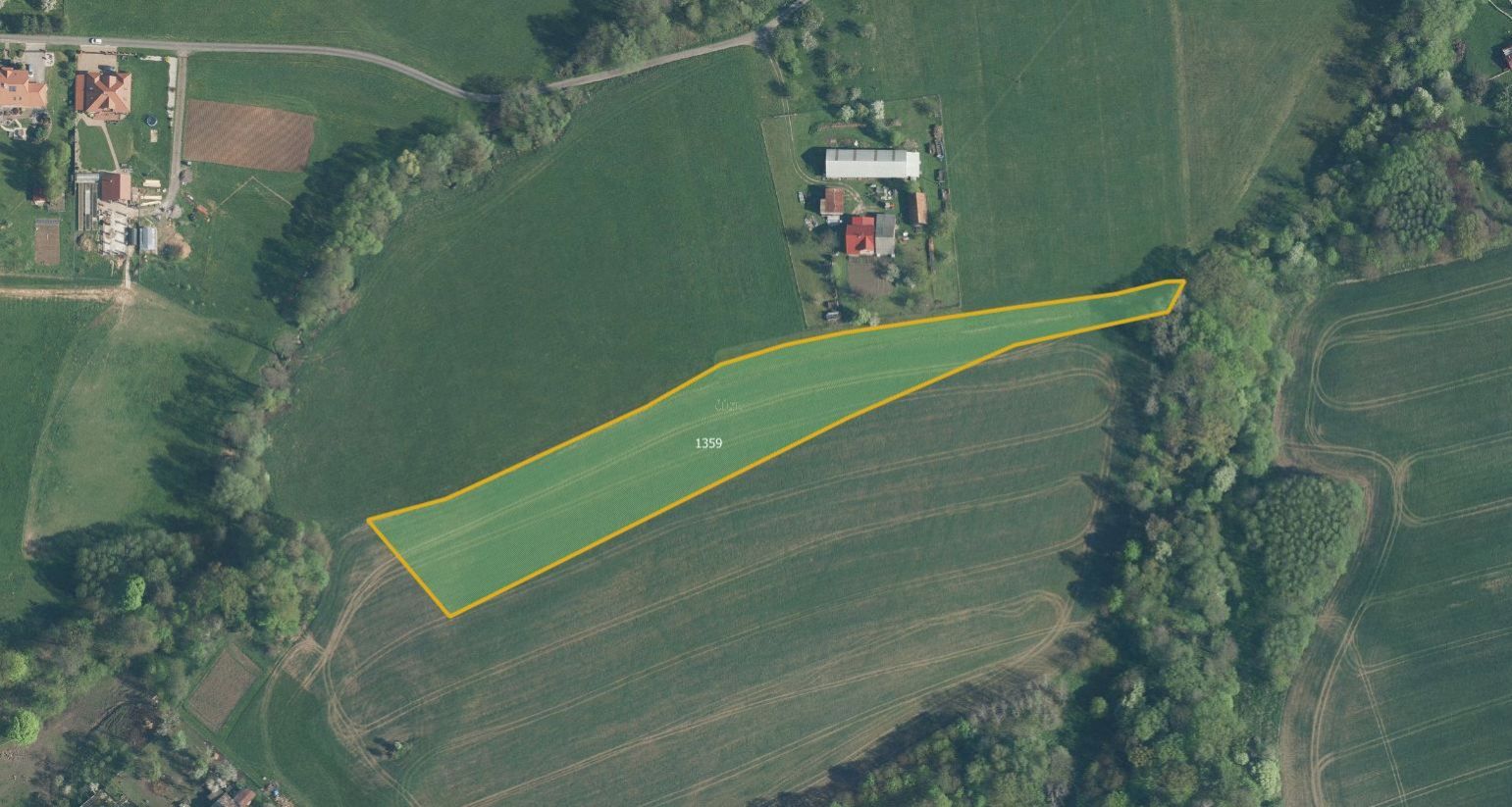 Pozemek má výměru 8 651 m2 a jedná se o ornou půdu. Parcela je zapsána na LV 354 pod číslem 1359 v KÚ Střítež. Součástí prodeje je také vlastnictví 1/10 na parcele č. 1767 zapsané na listu vlastnictví 358 v KÚ Střítež. Jedná se o ostatní plochu s výměrou 44 m2.