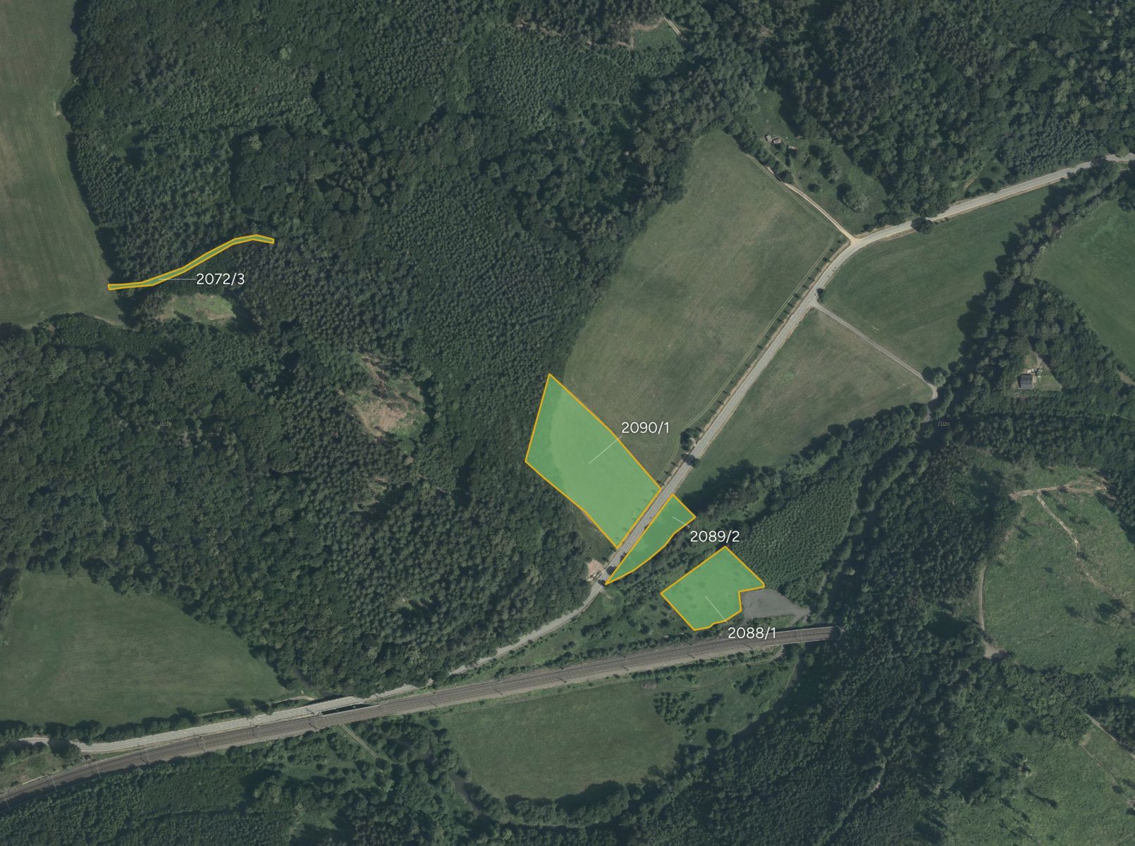 Pozemky parc. č. 2072/3, 2088/1, 2089/2, 2090/1 a 2168/3 jsou nabízeny ve spoluvlastnickém podílu 3/4 a jejich celková prodávaná výměra činí 18 254 m.