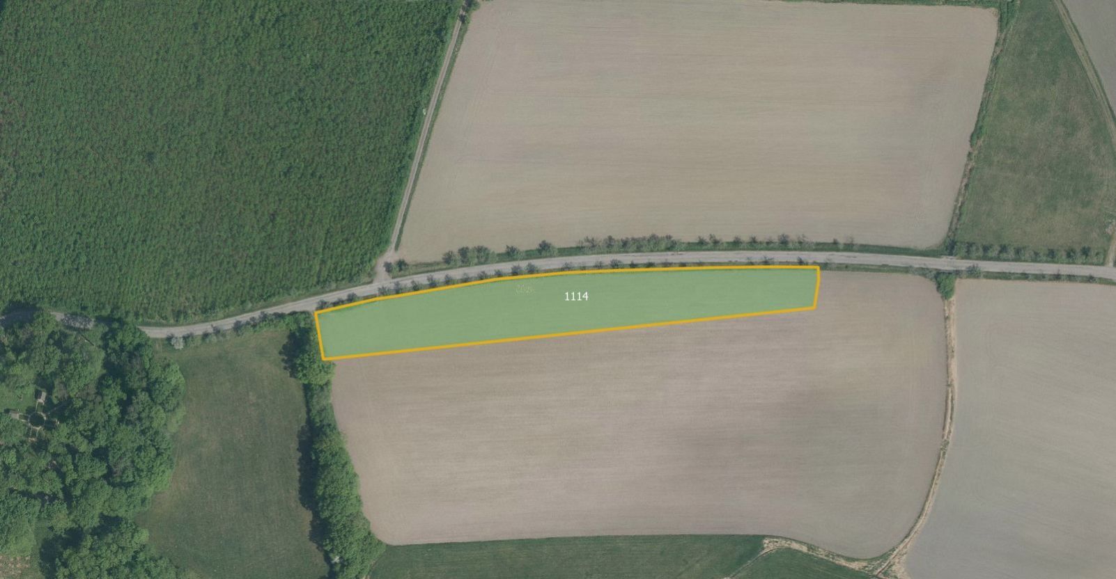 Celková výměra parcel 22 603 m. Předmětem prodeje je zde na nich 11 302 m, z toho 10 248 m orné půdy, 1 016 m trvalého travního porostu a 37 m vodní plochy.