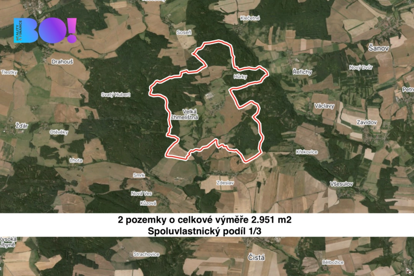 Nabízíme k prodeji 2 pozemky ve spoluvlastnickém podílu 1/3 vedené jako orná půda o celkové výměře 2951 m² v katastrálním území Velká Chmelištná, okres Rakovník. Přístup po obecní zpevněné komunikaci. BPEJ 53211, 56701, 53201. K pozemku p.č. 223/3 je sjednána pachtovní smlouva.