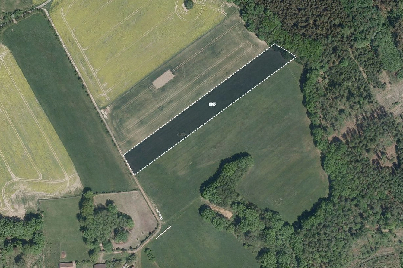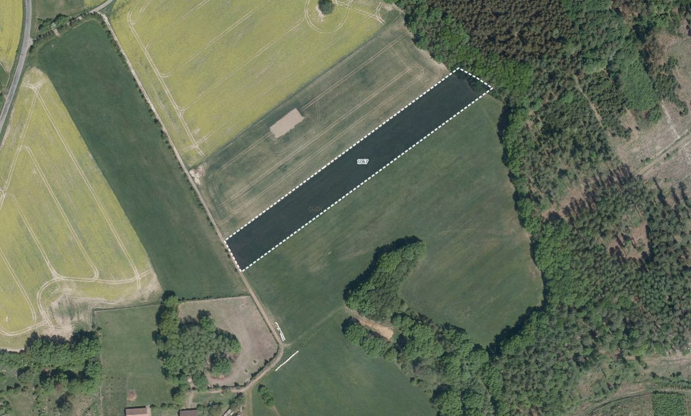 Pozemek je zapsán na LV 353 a zahrnuje parcelu č. 1067, která je v katastru nemovitostí vedena jako orná půda. Dle evidence LPIS je však užívána jako travní porost, což přináší flexibilitu v jejím hospodářském využití.