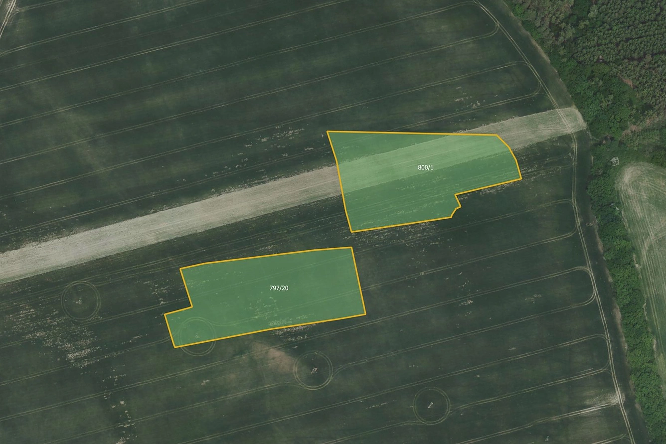 Celková výměra nabízených pozemků činí 18 234 m. Obě parcely jsou ve 100% vlastnictví a mají nadprůměrnou bonitu půdy v rámci katastru.