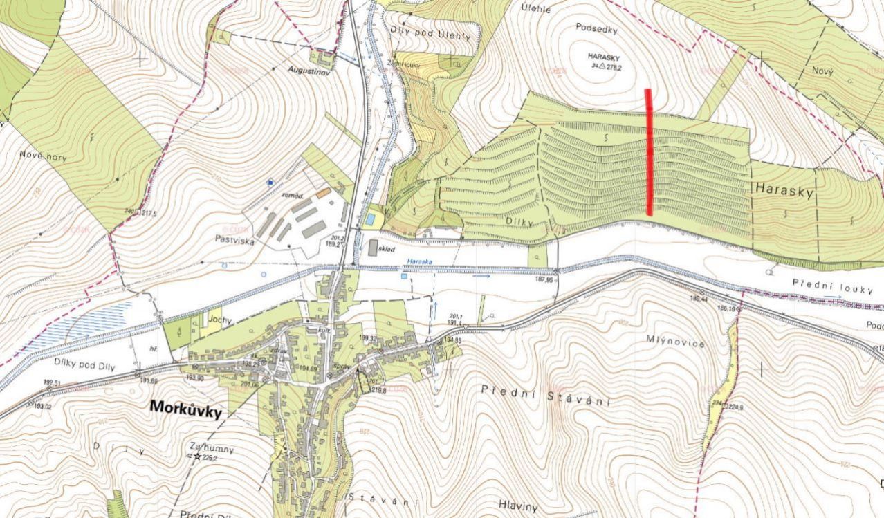 Pozemky jsou zapsány na LV 817 pod parcelními čísly 1944/254, 1944/255, 1944/372, 1944/373, 1944/374, 1944/375, 1944/564, 1944/565, 1944/566, 1944/567, 2240/113 a 2240/115. Jejich celková rozloha je 4 640 m2 z toho trvalý travní porost je 94 m2 a orná půda 4 546 m2.