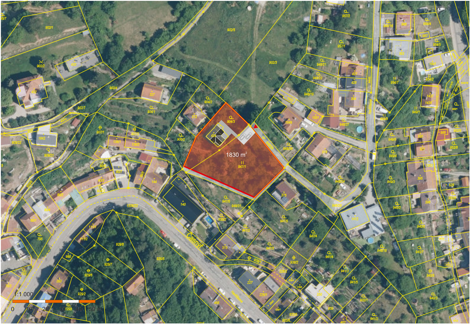 • pozemek o rozloze 1836 m2