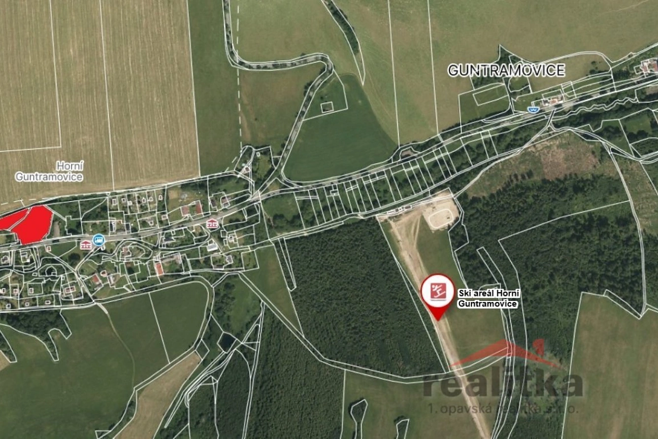 Nabízíme k prodeji pozemky v Guntramovicích, část Horní Guntramovice, okr. Opava. Jedná se o prozatím neobjevenou, krásnou rekreační lokalitu. Nejbližší městečko je 4,5 km vzdálený Budišov nad Budišovkou, do centra Ostravy je to 70 km, přičemž polovina trasy je po dálnici. Okolí je turisticky velmi zajímavé, k vodní nádrži Kružberk je to pouhých 10 min. jízdy autem (10 km), ke Slezské Hartě dojedete za 15 min (14 km). Přímo v obci je Skiareál Horní Guntramovice. V okolí je velké množství cyklotras, lesů, luk a hlavně klid a čistý vzduch. Na městský úřad ve Vítkově byla k pozemkům podána žádost na změnu územního plánu na stavbu rekreačních nemovitostí. Podle tohoto návrhu bude možné na pozemcích postavit až 4 samostatné chaty. Vlastník pozemku uzavřel s ČEZ Distribuce, a.s. smlouvu na osazení elektroměru. Bližší informace u makléře Tomáše Kořistky, tel.: 734446660.