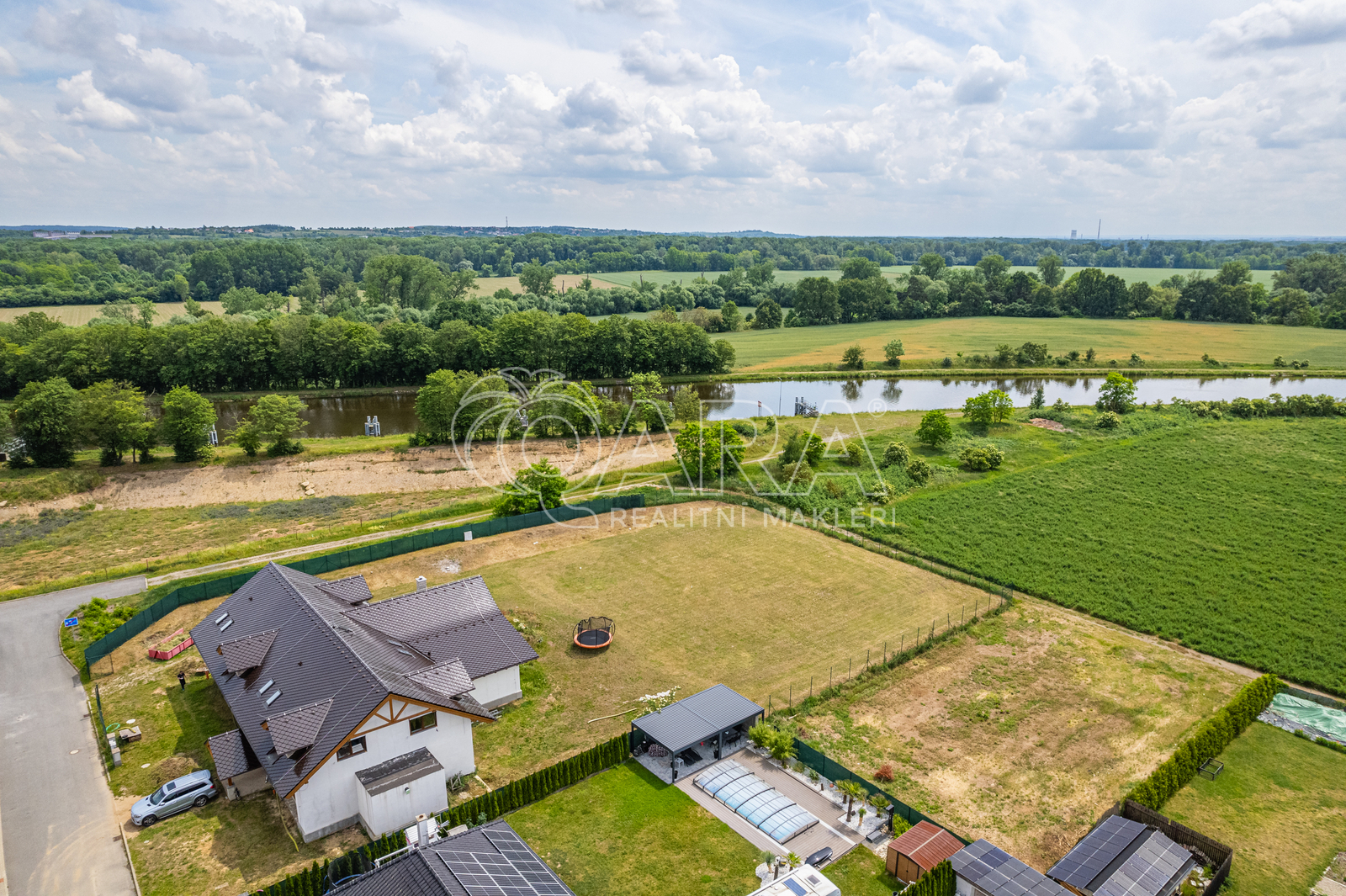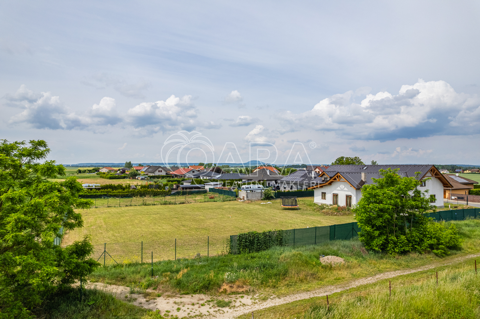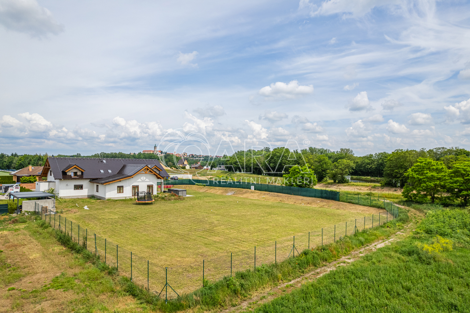 V inzerci je použita vizualizace pro lepší představu možnosti umístění domu na pozemku.