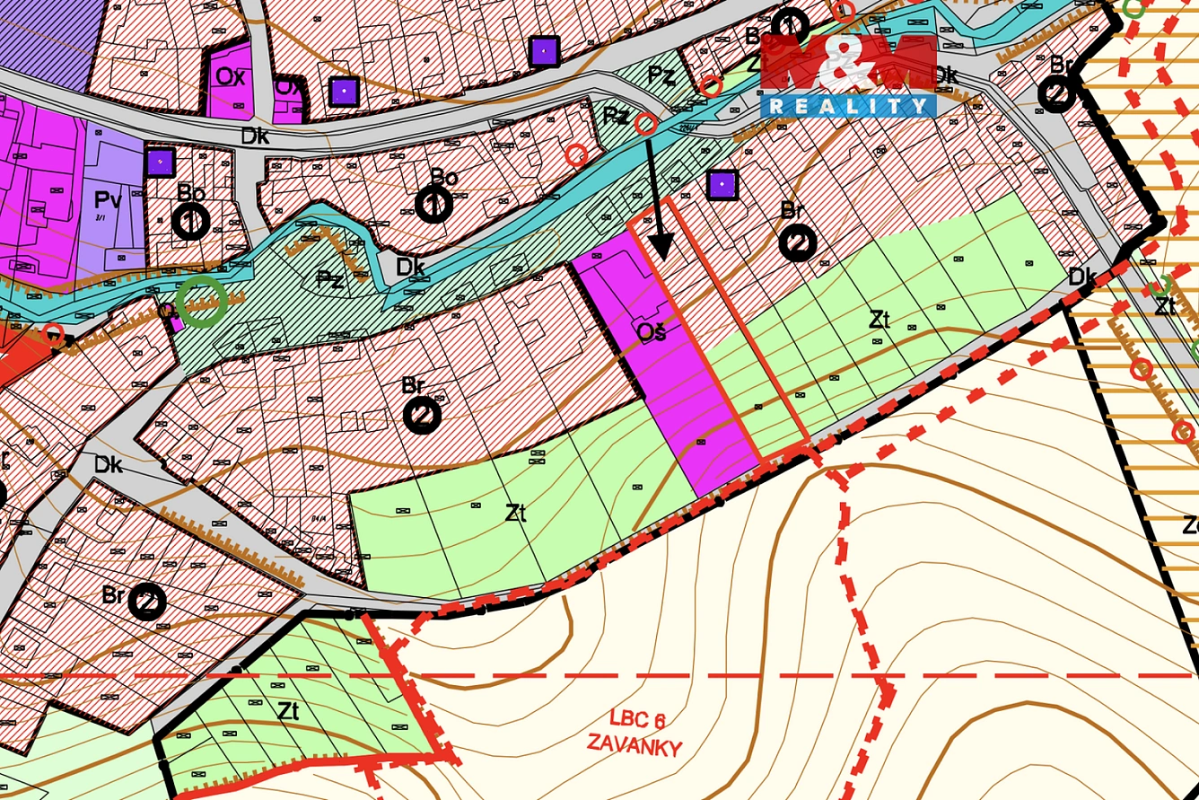 Nabízíme prodej stavebního pozemku s torzem řadového rodinného domu k demolici, pro výstavbu nového rodinného domu. Uliční šíře pozemku je 17,5 m. Stavby v této zóně musí svým charakterem (pojednáním hmot, barevností) odpovídat venkovskému obrazu sídla a mohou mít maximálně dvě nadzemní podlaží. Maximální zastavěnost je 35% pozemku. Aktuální zastavěná plocha a nádvoří je o rozloze 597 m2, k čemuž náleží 1569 m2 zahrady, celková plocha nabízených pozemků je 2166 m2. Parcela je v územním plánu označena přibližně z poloviny jako zastavitelné území a z druhé poloviny jako zeleň. Pozemek bude vyklizen a srovnán, demolice je však na novém majiteli. Více informací v RK.