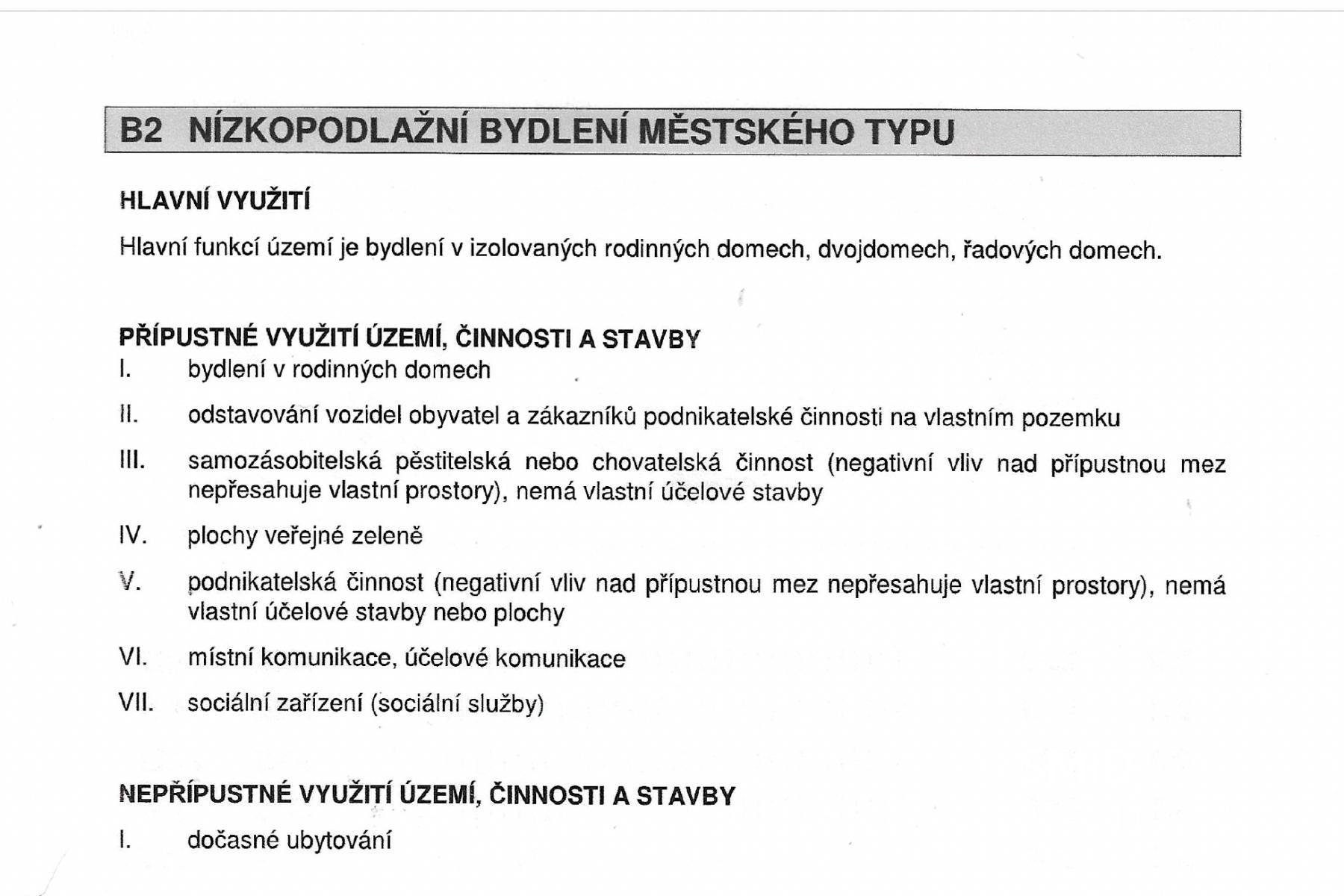 Dle územního plánu je zde možná výstavba budov zařazená do kategorie B2 - nízkopodlažní bydlení městského typu. Hlavní funkcí území je bydlení v izolovaných rodinných domech, dvojdomech a řadových domech. Přípustné využití území, činnosti a stavby musí vyhovovat nárokům na rodinné bydlení se soukromými zahradami, zastavěná plocha nepřesahuje 60% pozemku. Budova může mít nejvýše dvě nadzemní podlaží a podkroví nebo ustupující podlaží, při zachování struktury, charakteru a architektonického výrazu zástavby. Více o charakteristice domu naleznete v popisu mezi fotografiemi.