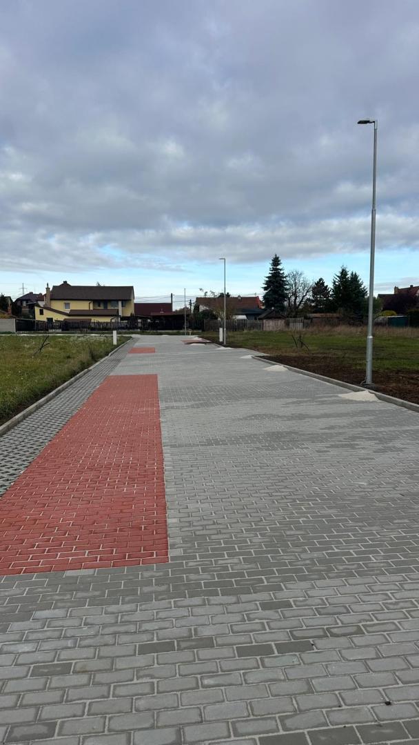 Vodovodní a kanalizační řád je již umístěn, elektrické vedení je také k dispozici. V současné době probíhá výstavba komunikace. První řada pozemků je od silnice vzdálena 37,5 m a izolována 3m vysokým přírodním valem. Dokončení veškerých stavebních prací je plánováno do konce roku 2025.