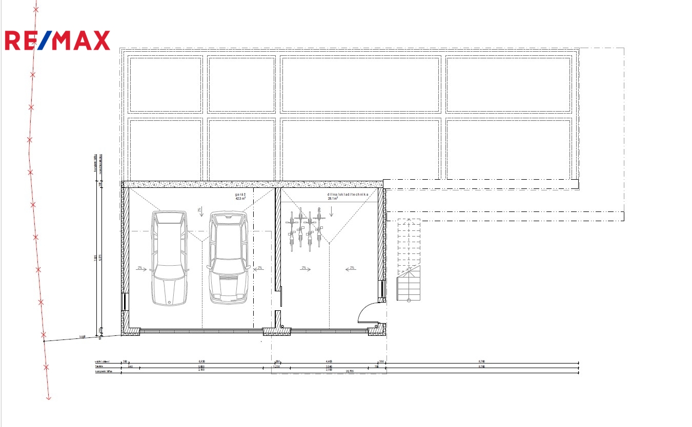 • Stávající garáže: 52 m² (2 %)