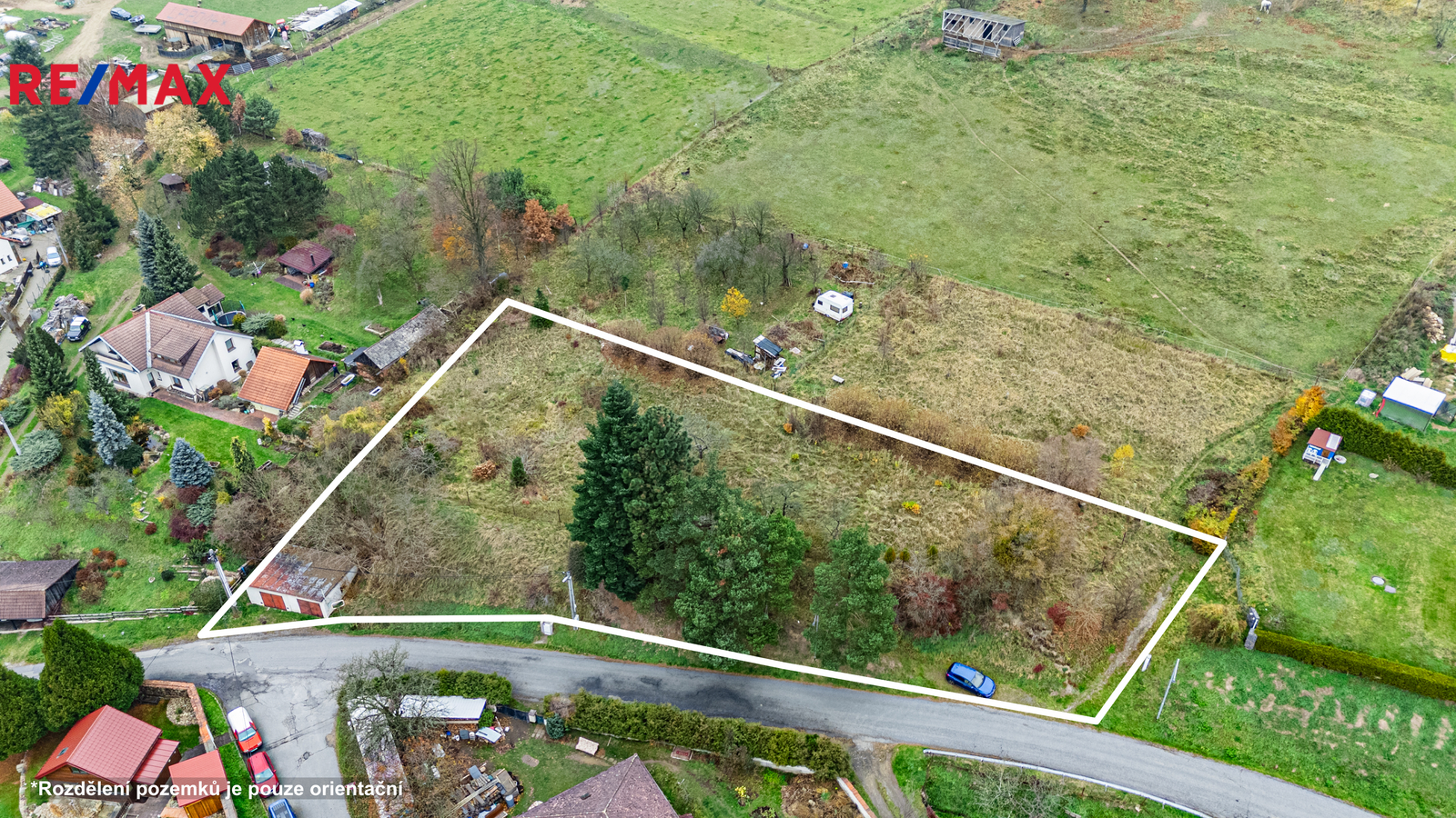 • možnost rozdělení na dvě stavební parcely a výstavby dvou rodinných domů