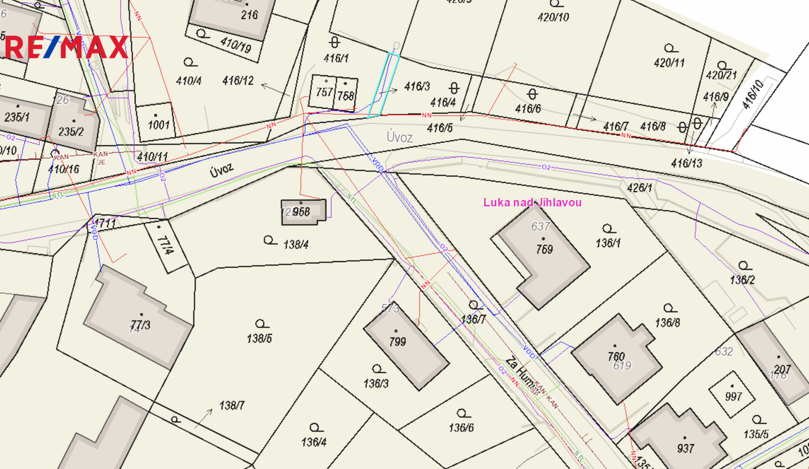 Luka nad Jihlavou – městys s úplnou občanskou vybaveností, školou, školkou, lékaři, obchody, službami i sportovišti. Pravidelné autobusové i vlakové spojení zajišťuje snadnou dostupnost do Jihlavy (12 km). Lokalita patří mezi nejvyhledávanější v okolí – díky klidné atmosféře, zeleni a přirozenému propojení s městem.