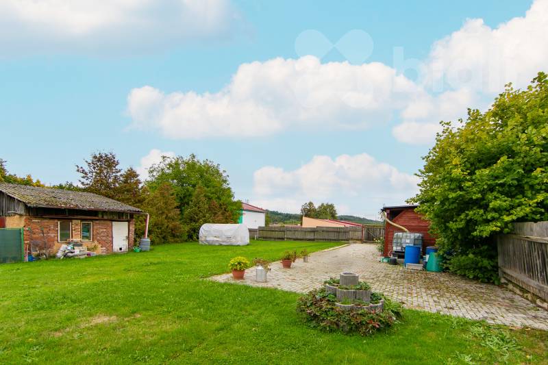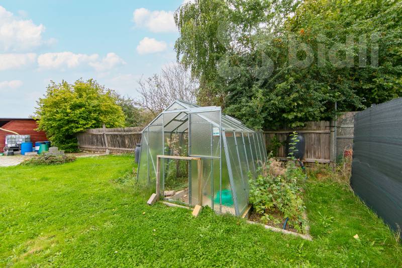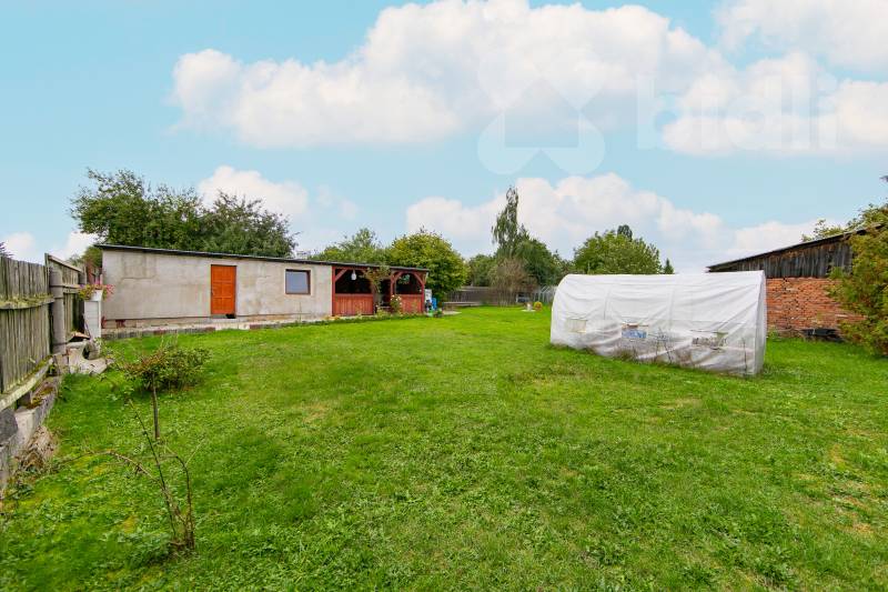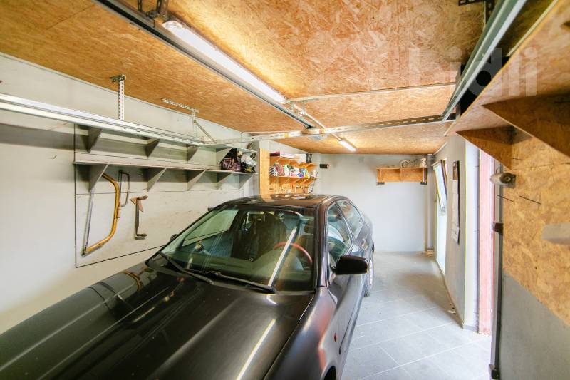 Na pozemku je postavená prostorná cihlová garáž s přístupem z hlavní komunikace o velikosti 19m2. Garáž je zateplená a má přívod elektrického proudu na 220V a automatická elektrická vrata na dálkové ovládání.