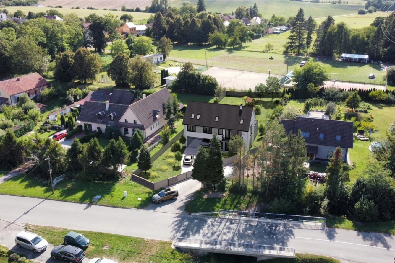 Komunikace k pozemku vede po asfaltové cestě, což zajišťuje snadnou dostupnost. Pozemek je napojen na veřejnou kanalizaci, přičemž elektrická přípojka a veřejný vodovod je na hranici pozemku.