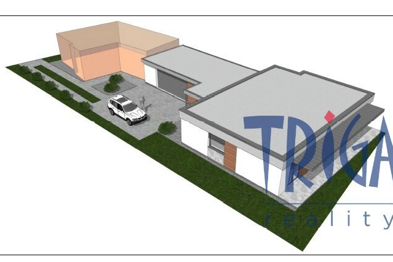 Součástí prodeje je rodinný dům s číslem popisným o dispozici 2+1 (75 m²), určený k rekonstrukci. Na pozemku je již schválena projektová dokumentace na jeho rozšíření o moderní přístavbu 4+1 (110 m²) s terasou a garáží (48,8 m²) – ideální možnost, jak si vytvořit vysněné rodinné bydlení.