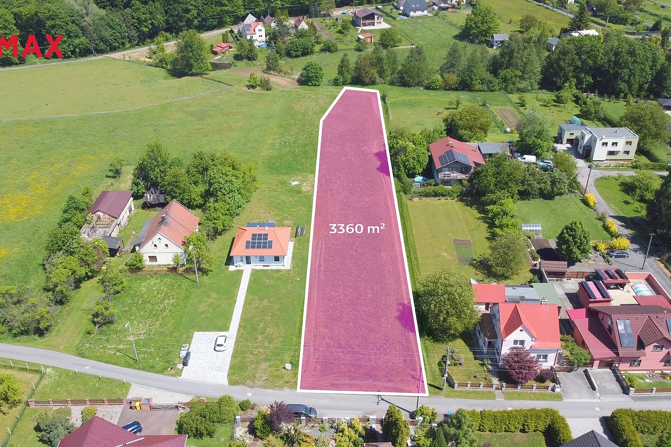 Nadstandardní pozemek! Parádní lokace ve slepé ulici, minimální provoz, pohodové místo. Celý pozemek má výměru 4052 m2, z toho je přibližně 1900 m2 určeno územním plánem jako plocha bydlení individuálního (koef. zastavitelnosti 0,3), a přibližně 2150 m2 určeno jako plocha zemědělská (nezastavitelná, možno využít například pro přímé pěstování nebo pastevectví). Plus (nad rámec uvedených 3360 m2) je k dispozici travnatá plocha cca 700 m2 (krajní pruh o šíři 4m podél východní hranice pozemku) která je součástí prodeje, a na které nelze stavět.