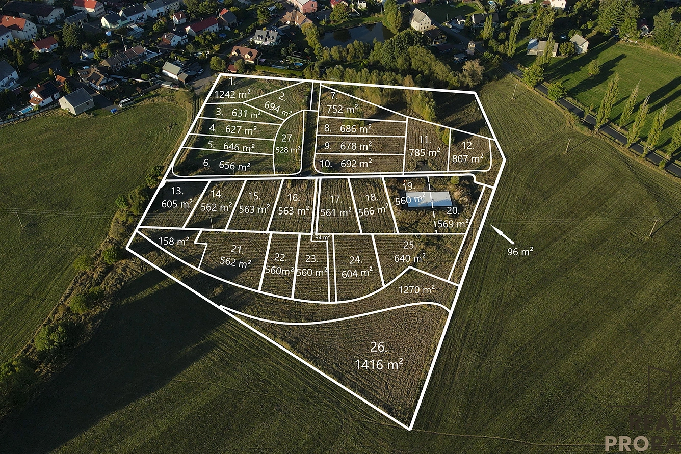 26 parcel, z toho 19 parcel připravených ke stavbě