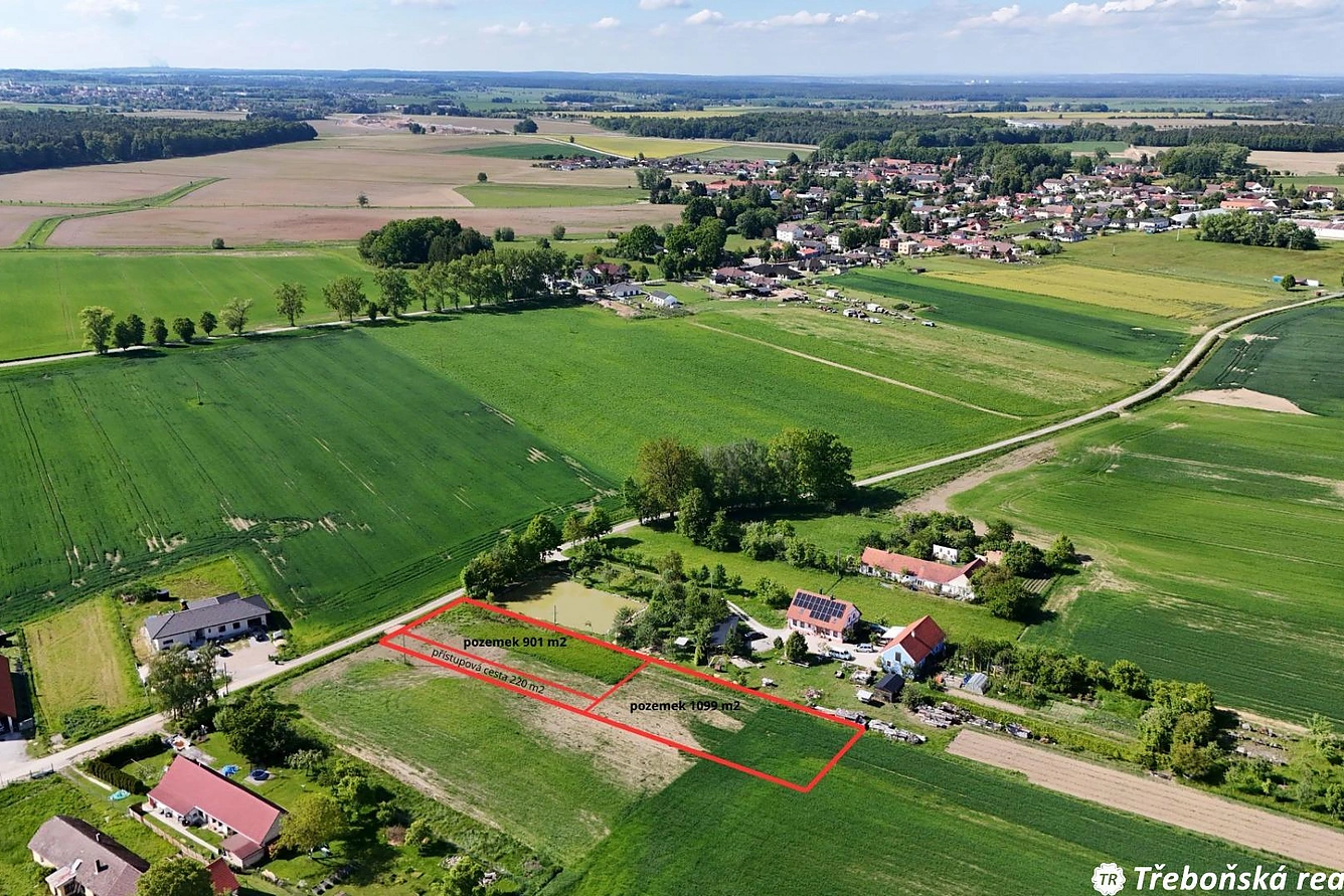 Pozemek je o výměře 900 m2 + podíl na přístupové cestě, kde celá část tohoto pozemku je schválena územním plánem jako stavební.