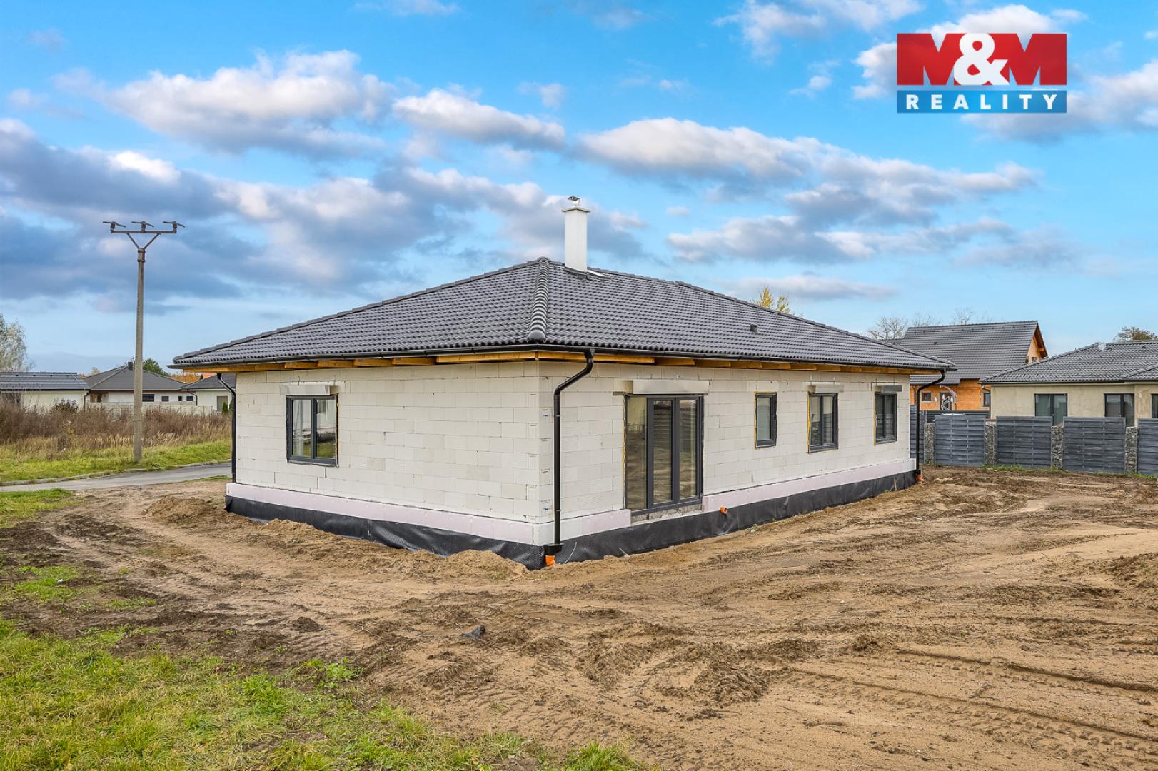 Nabízíme k prodeji pozemek 700 m² se stavbou rodinného domu 5+kk o podlahové ploše 138 m², zastavěné 171 m². K prodeji bude předán s kolaudací plánovanou na březen 2026. Dům o dispozici 5+kk, se dvěma koupelnami, technickou místností, obývacím pokojem s kuchyňským koutem, dvěma pokoji a pracovnou. Zděná stavba z Ytongu, zateplená, okna trojskla, předokenní žaluzie, foukaná izolace stropu, betonové tašky s povrchovou úpravou. Teplovodní podlahové topení čerpadlem Toshiba-voda, vzduch. Vnitřní klimatizační jednotky v každé místnosti, také příprava pro fotovoltaiku - rozvaděč i kabeláž. Dům je napojen na veřejný vodovod i kanalizaci. Energetická hodnota B - velmi úsporná. Příjemná lokalita menší obce s mateřskou školou, obchody, obklopená přírodou. Velkým lákadlem je také zámek Kačina, vzdálen 2 km s rozsáhlým anglickým parkem a naučnou stezkou, bylinkovou zahrádkou a skleníkem. Bližší informace vám rádi sdělíme při prohlídce nemovitosti.