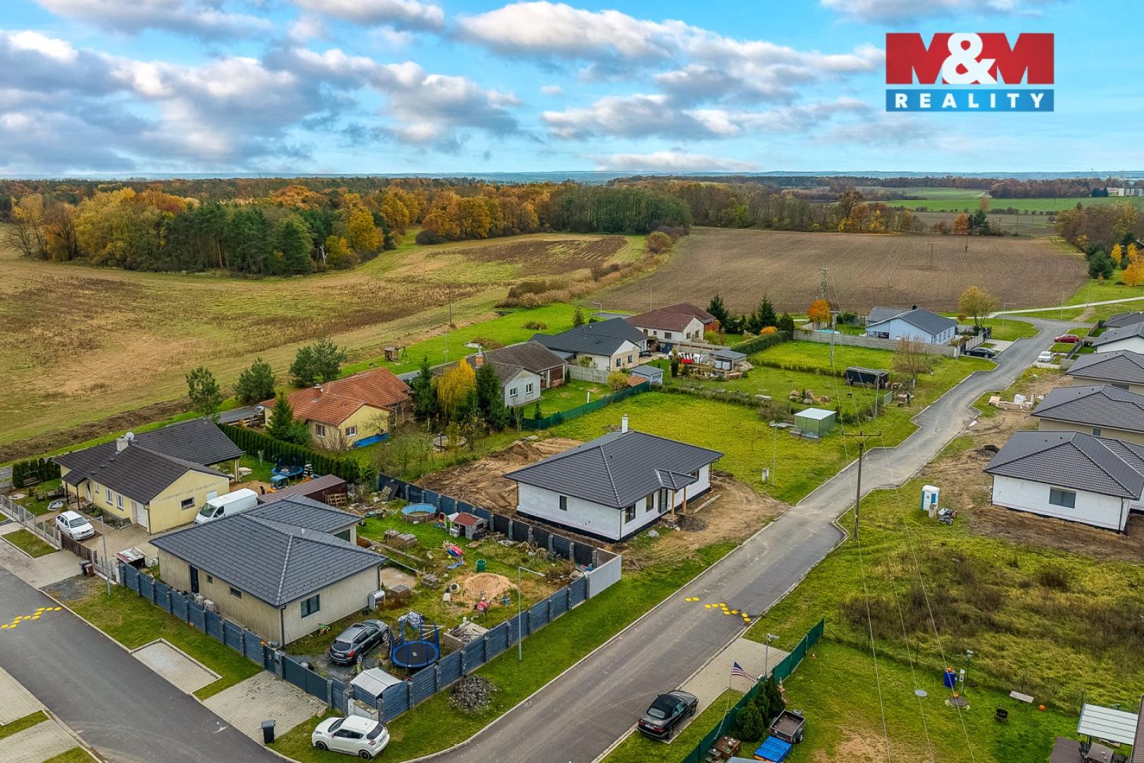 Nabízíme k prodeji pozemek 700 m² se stavbou rodinného domu 5+kk o podlahové ploše 138 m², zastavěné 171 m². K prodeji bude předán s kolaudací plánovanou na březen 2026. Dům o dispozici 5+kk, se dvěma koupelnami, technickou místností, obývacím pokojem s kuchyňským koutem, dvěma pokoji a pracovnou. Zděná stavba z Ytongu, zateplená, okna trojskla, předokenní žaluzie, foukaná izolace stropu, betonové tašky s povrchovou úpravou. Teplovodní podlahové topení čerpadlem Toshiba-voda, vzduch. Vnitřní klimatizační jednotky v každé místnosti, také příprava pro fotovoltaiku - rozvaděč i kabeláž. Dům je napojen na veřejný vodovod i kanalizaci. Energetická hodnota B - velmi úsporná. Příjemná lokalita menší obce s mateřskou školou, obchody, obklopená přírodou. Velkým lákadlem je také zámek Kačina, vzdálen 2 km s rozsáhlým anglickým parkem a naučnou stezkou, bylinkovou zahrádkou a skleníkem. Bližší informace vám rádi sdělíme při prohlídce nemovitosti.