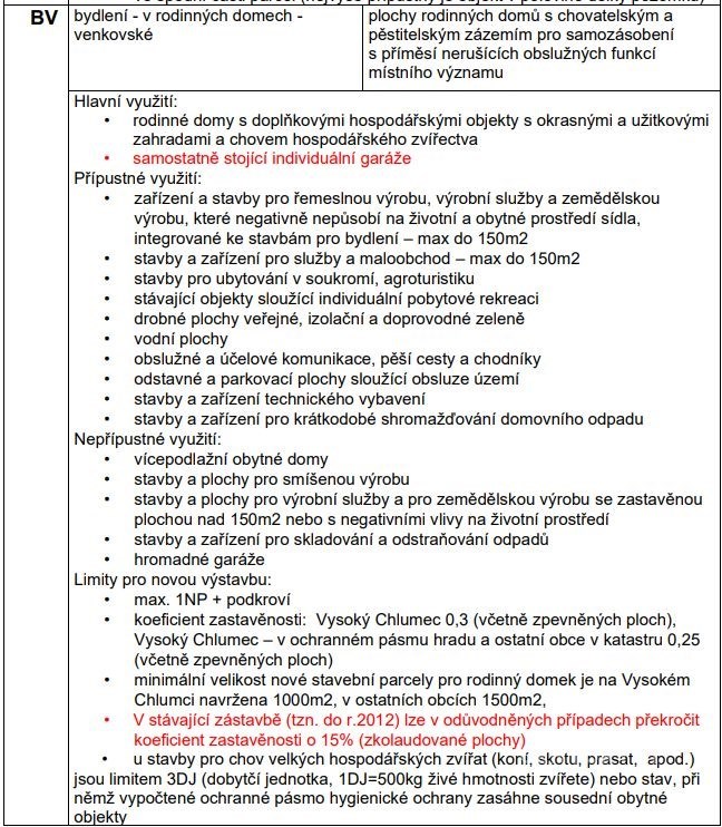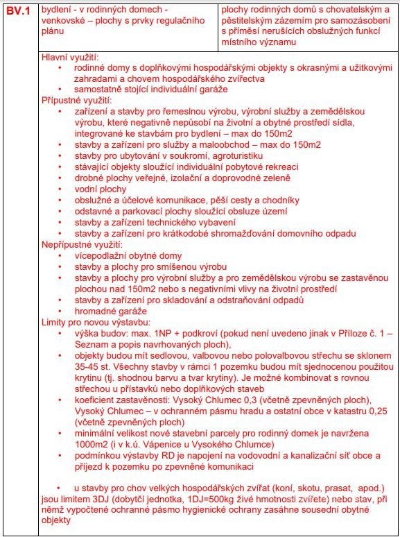 Pozemek je možné zastavět až 4 rodinnými domy. Tato možnost dělení je zohledněna ve vydaném povolení na sjezdy z komunikací i v kapacitě již existující přípojky elektřiny. Celý pozemek vyjma ochranného pásma lesa je zařazen do zóny venkovského bydlení (BV), díky čemuž nabízí široké možnosti využití včetně hospodaření nebo podnikání.
