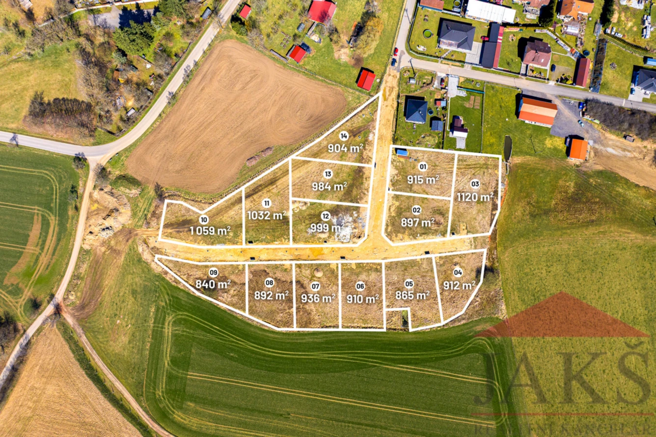 Celou paletu zasíťovaných pozemků o výměře od 840 do 1.120 m2 prodává přímo obec. Bez zbytečných nákladů navíc. Elektřina, voda, plyn, kanalizace, zkolaudovaná příjezdová cesta – vše je připraveno. Silnice bude potažena asfaltem, pěšky půjdete bezpečně po nových chodnících s veřejným osvětlením.