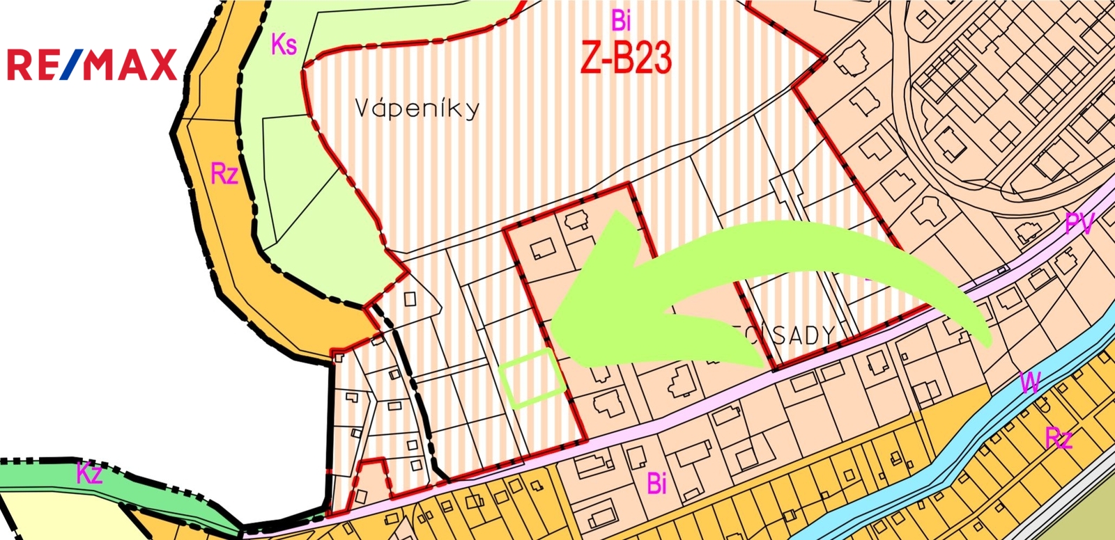 Na pozemku jsou navíc umístěny revizní šachty k vodovodu a kanalizaci a také elektrický rozvaděč. Dle územního plánu je pozemek veden v „plochách individuálního bydlení“, tedy určen k výstavbě rodinných domů.