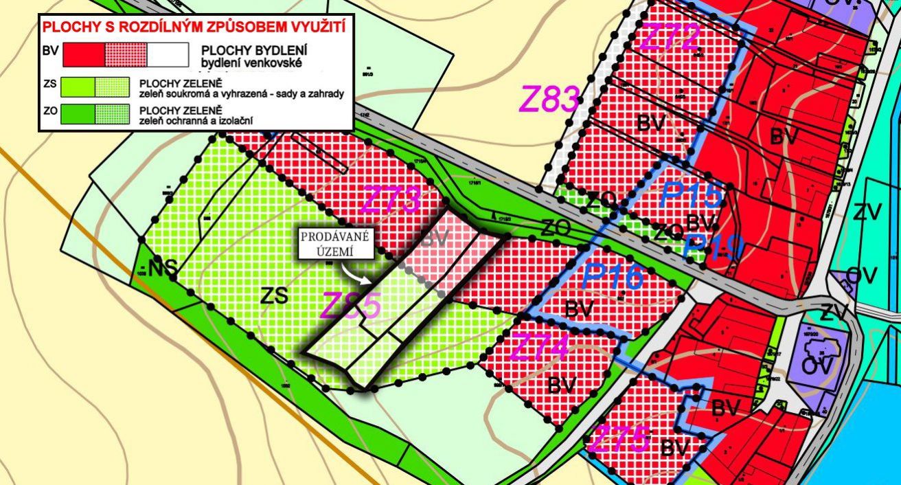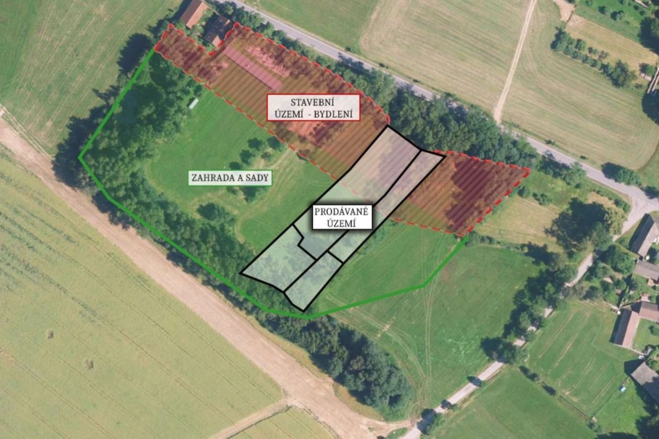 Dle územního plánu obce jsou tyto pozemky zamýšleny pro výstavbu domu s přiléhající rozlehlou zahradou. Ze severní strany přiléhají k parcelám v obecním vlastnictví, bude tak možné napojení přístupové cesty.