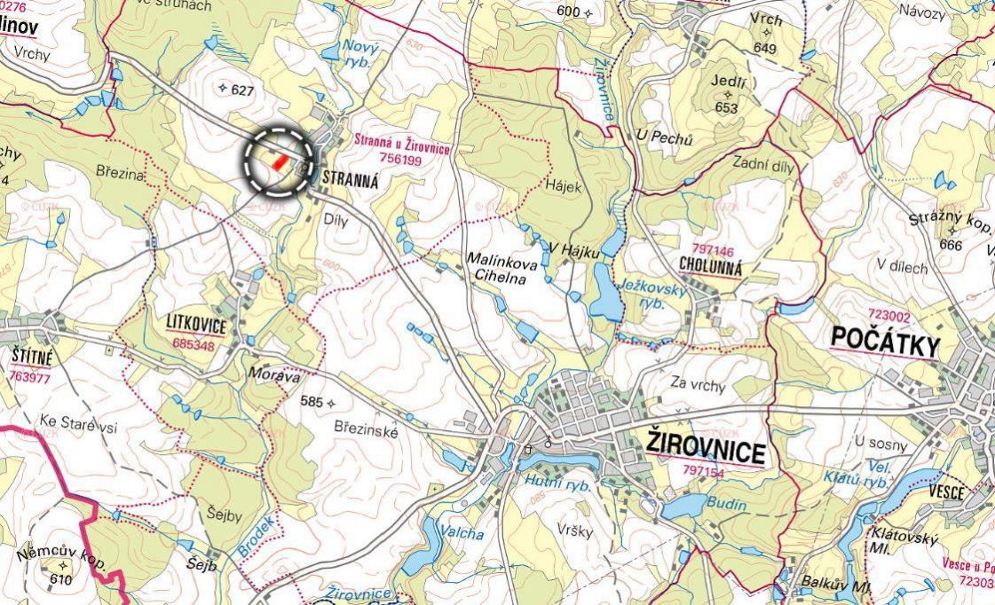 Prodej stavební parcely 2 497 m², Stranná, Žirovnice