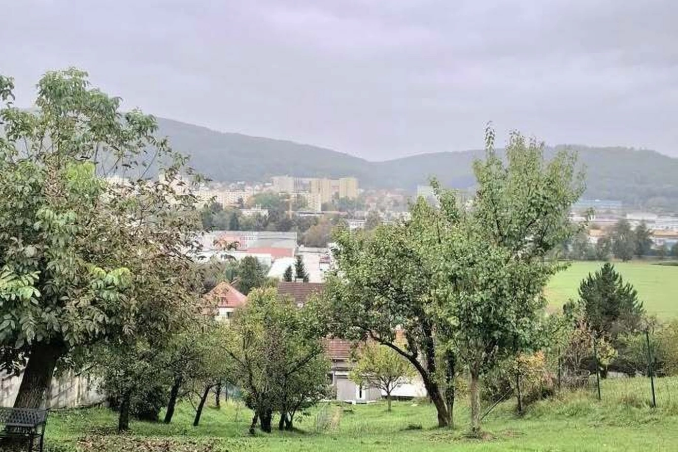 Jižní svah s výhledem do okolní krajiny. Prosluněny pozemek celý den.
