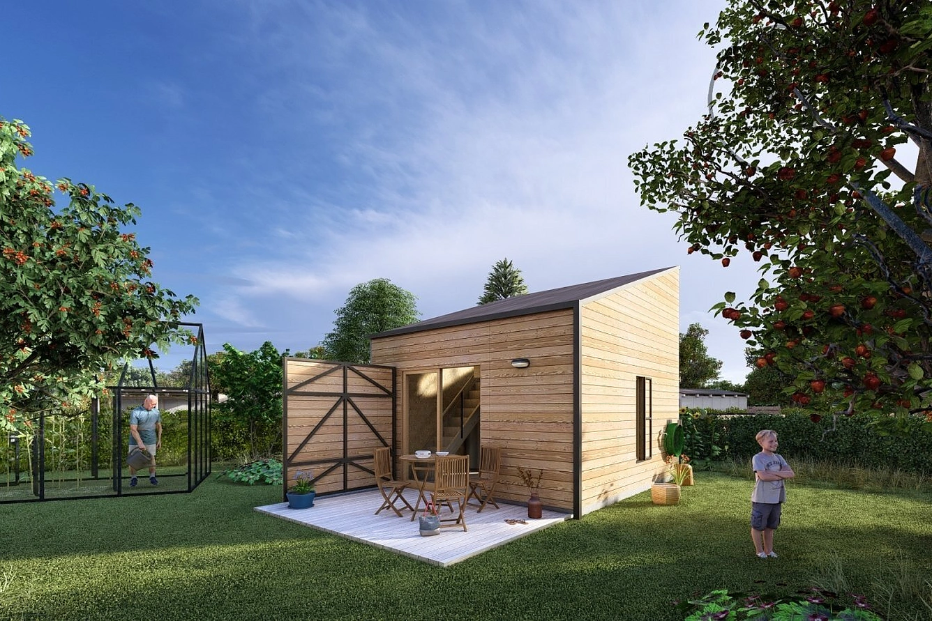 Každá zahrádka má minimálně 400 m², je oplocena a součástí je designový zahradní domek. Zahradní domek je dřevostavba se železobetonovou základovou deskou o zastavěné ploše 20 m² a výšce 4,5 m. Domek je vybaven okny s izolačními dvojskly, dlažbou v přízemí a dřevěnou podlahou v horní části. Vnitřní stěny jsou z OSB desek s výmalbou, což vytváří útulný a praktický interiér. Dominantou každého domku jsou velké terasové dveře se vstupem na terasu o ploše 9 m², doplněné o okenice tvořící při otevření postranní clonu, která zaručí dostatek soukromí. Střešní krytinu tvoří falcovaný plech, na který je možné umístit FVE panely.