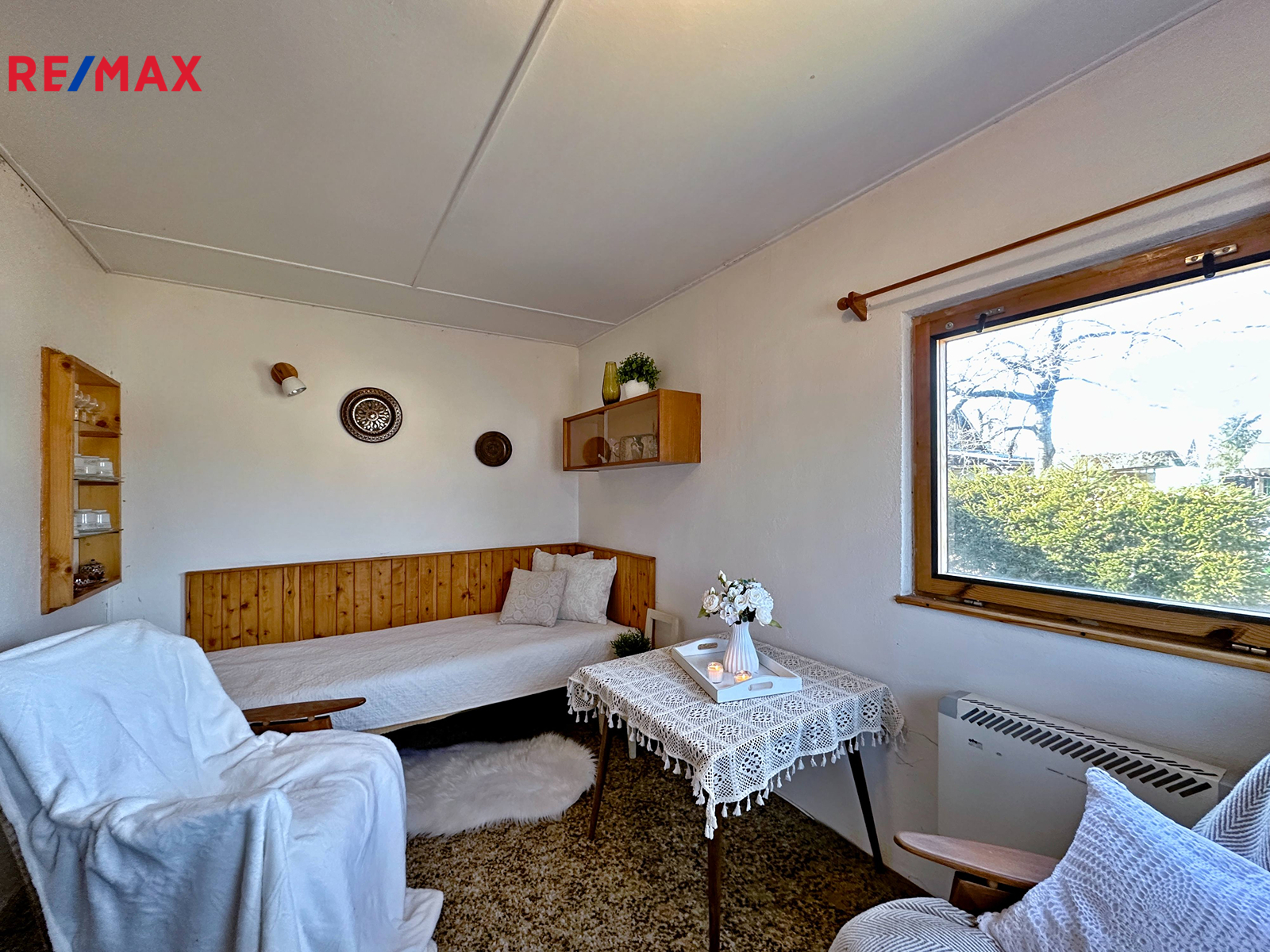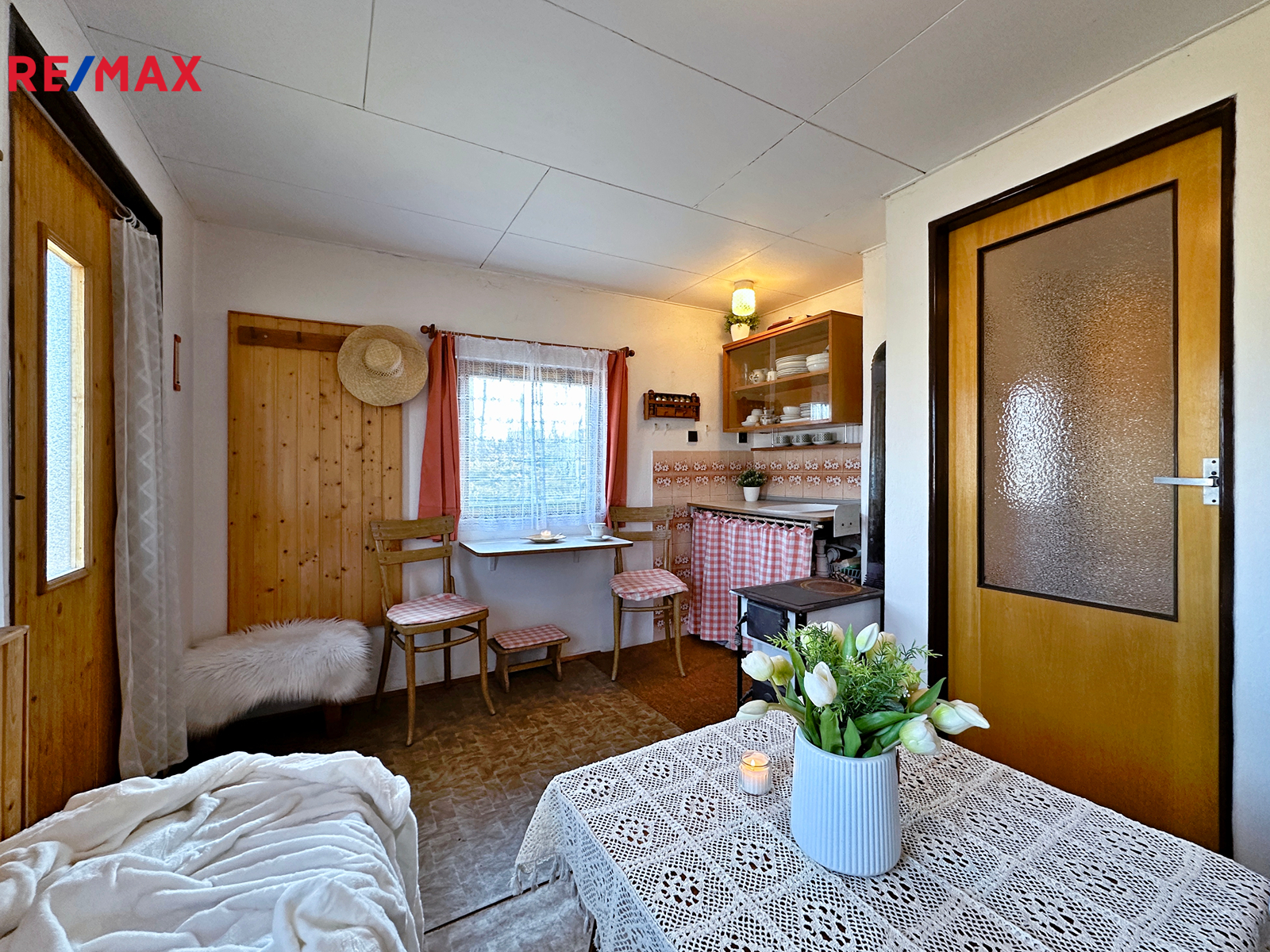 Na pozemku stojí udržovaná chata, která je připravena k užívání. V přízemí domu je kuchyň, obývací pokoj a WC. Ložnice se nachází v patře.