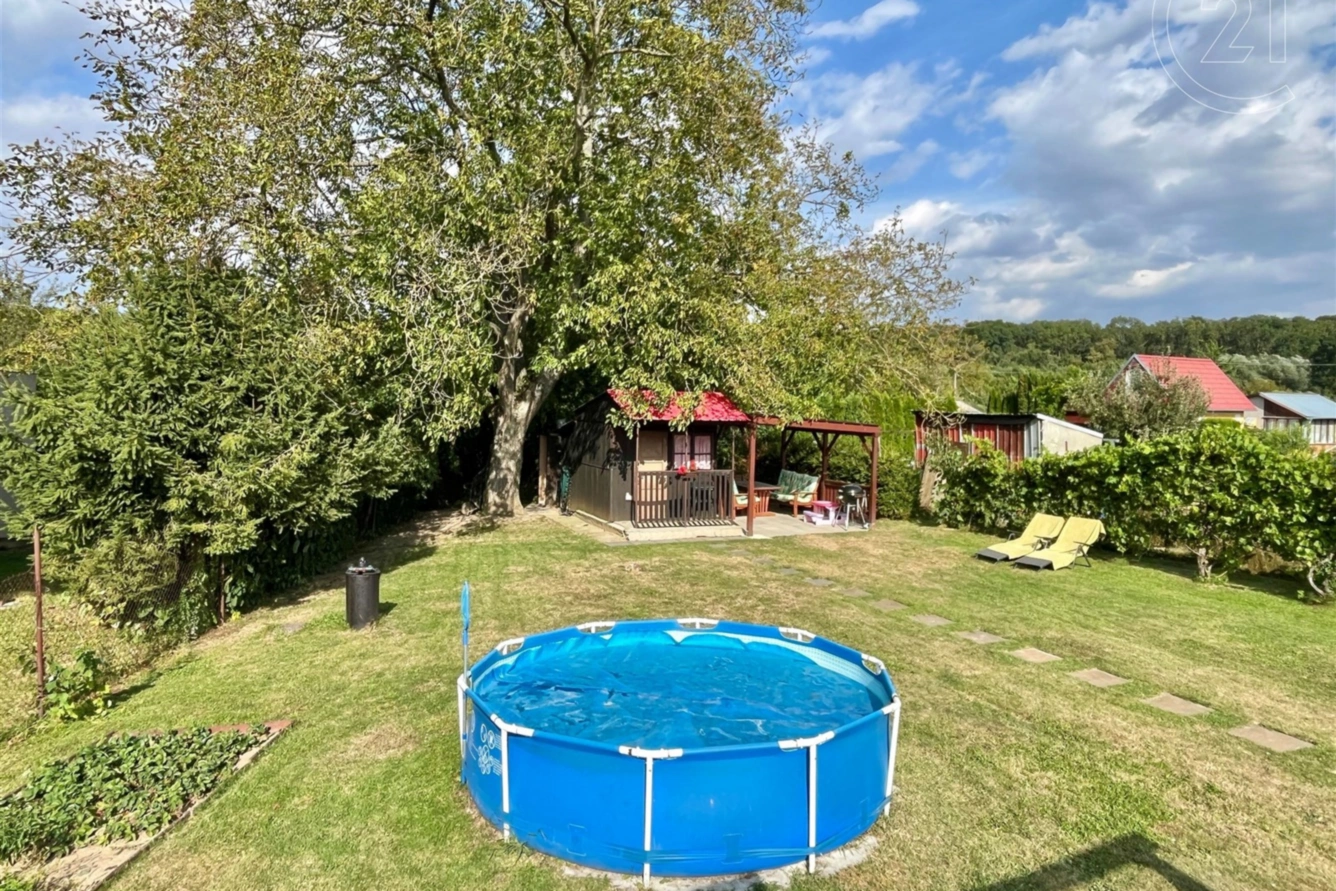 Pozemek je zatravněný, doplněný o vzrostlý ořech, vinou révou a mladé túje, které zajišťují příjemné prostředí a soukromí. Za chatkou je umístěno chemické WC a dřevěná kůlna pro úschovu zahradního nářadí. Doporučuji prohlídku.