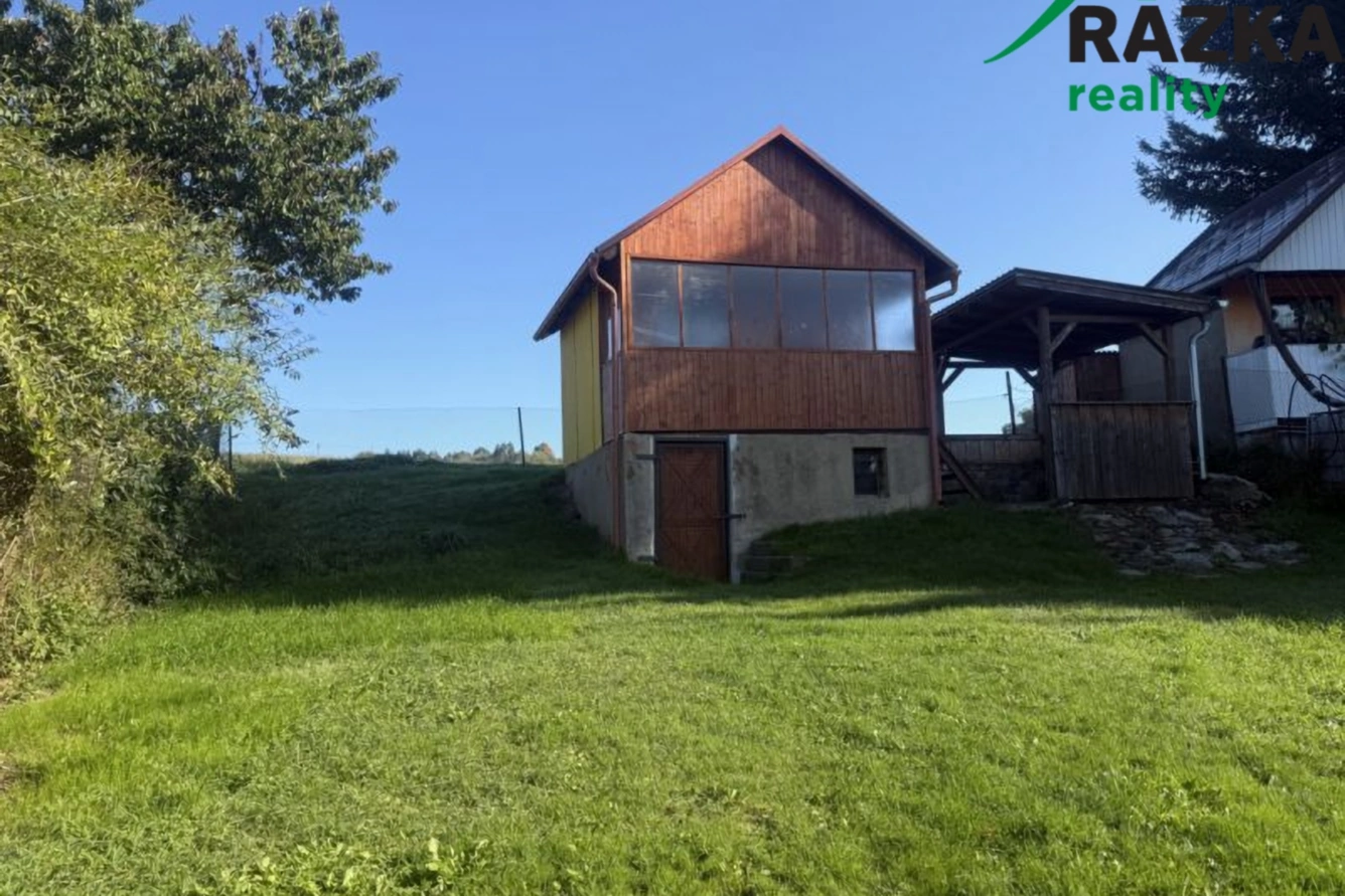Na pozemku stojí dřevěná chatka se zasklenou verandou a praktickým skladovým prostorem, která poskytuje ideální zázemí pro víkendový odpočinek nebo zahrádkářské využití. K dispozici je také dřevěná pergola.