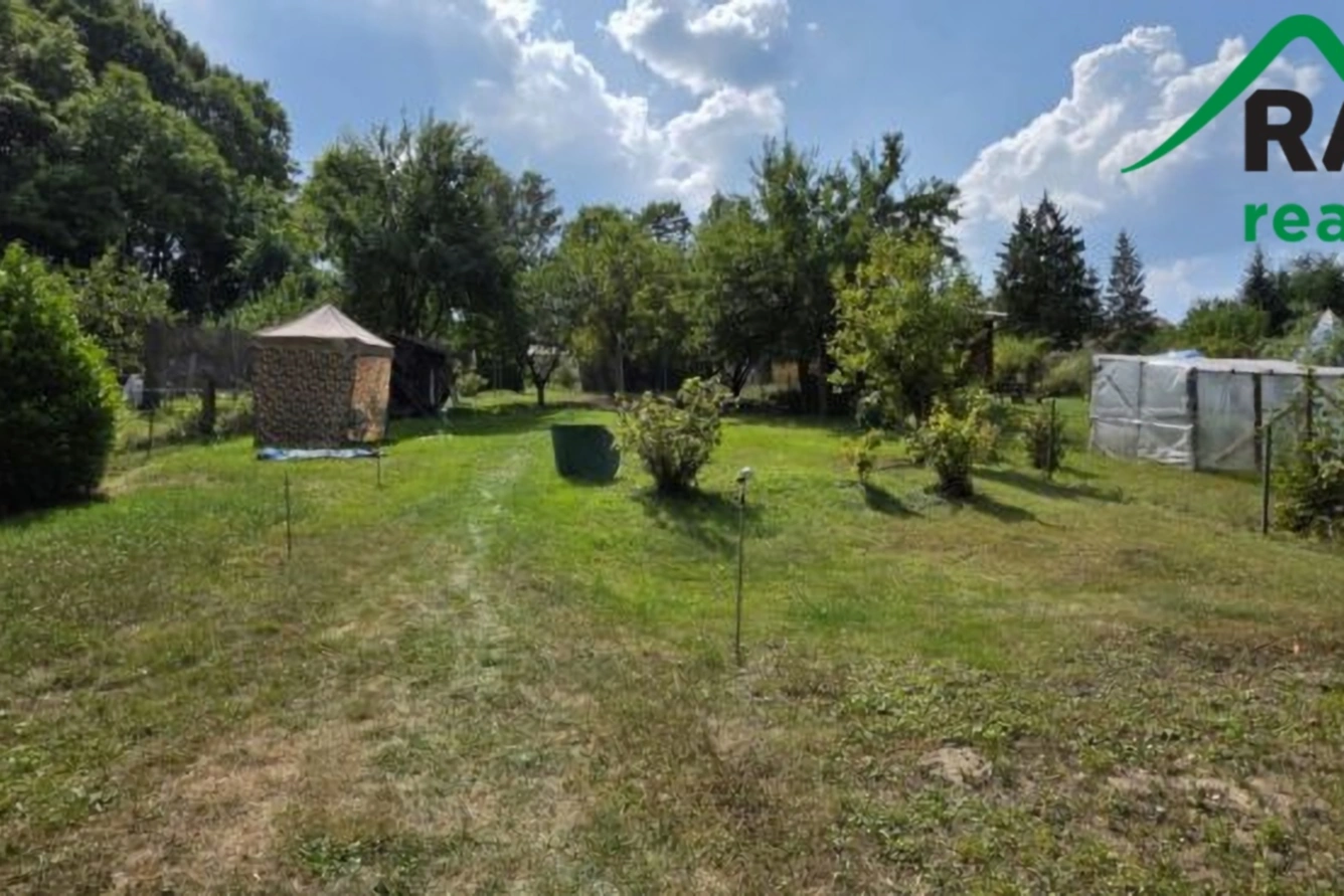 Zahrada je osázená ovocnými stromy a je velmi mírně svažitá. Na pozemku je přípojka pitné vody.
