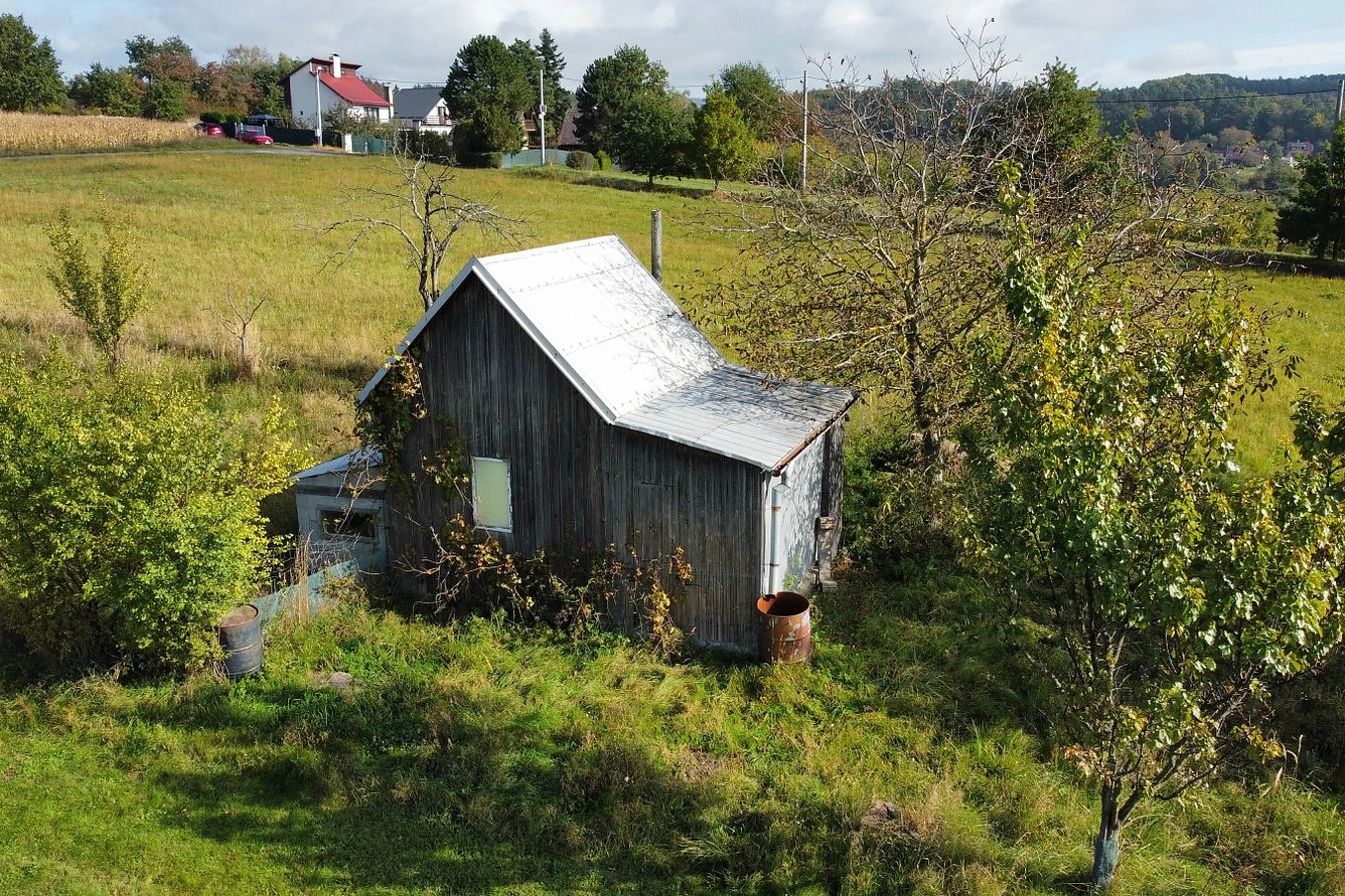 Na pozemku stojí dřevěná zahradní chatka se sedlovou střechou a komínem, kterou lze využít jako základ pro přestavbu na stylové venkovské zázemí. Okolní zeleň, ovocné stromy a soukromí dělají z tohoto místa ideální útočiště pro odpočinek mimo ruch města.