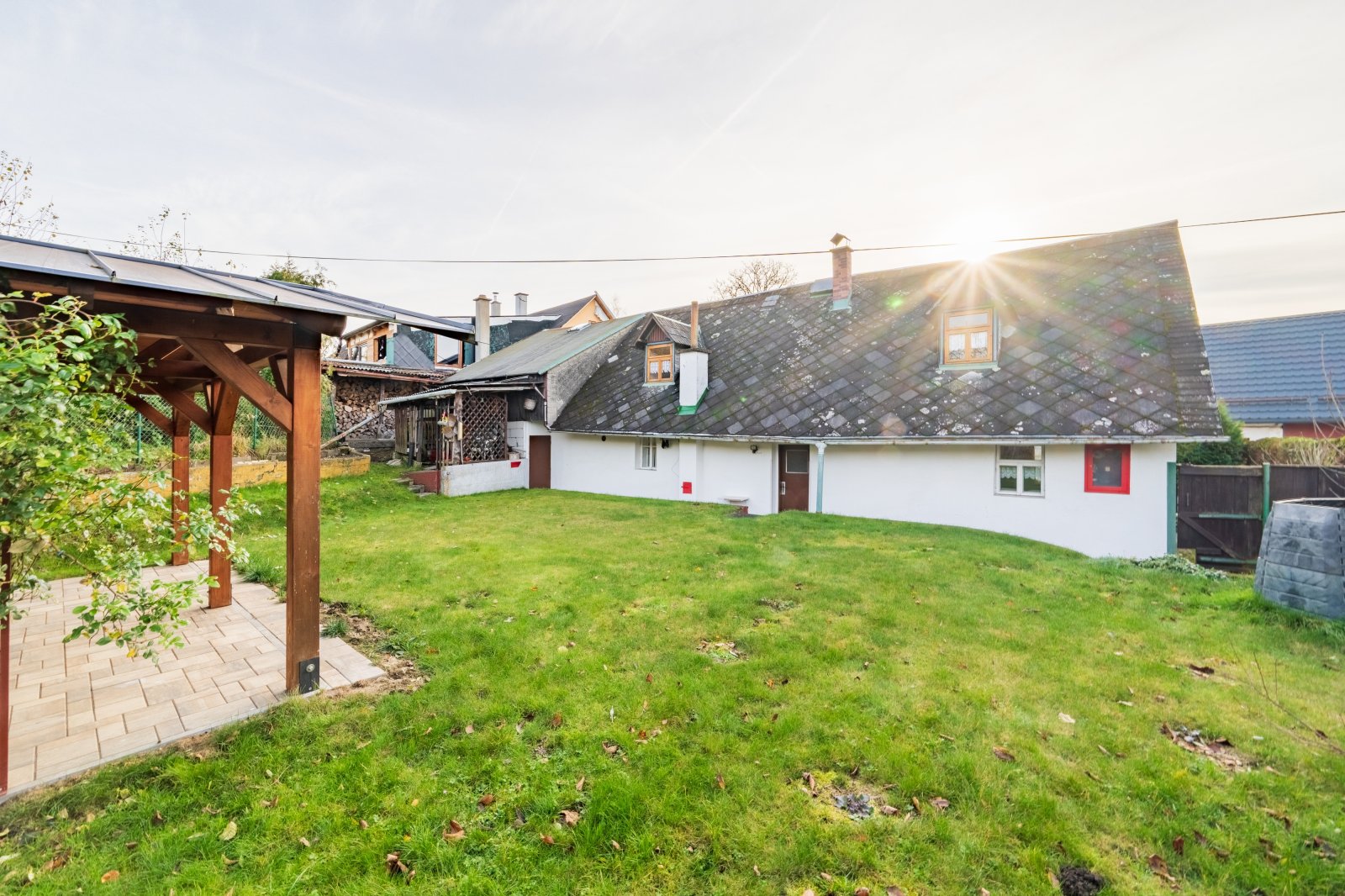 Dům stojí na pozemku o celkové výměře 438 m². Jde o ideální velikost pro rekreaci – zahrada poskytuje dostatek soukromí a prostoru pro relaxaci, ale nevyžaduje náročnou údržbu.