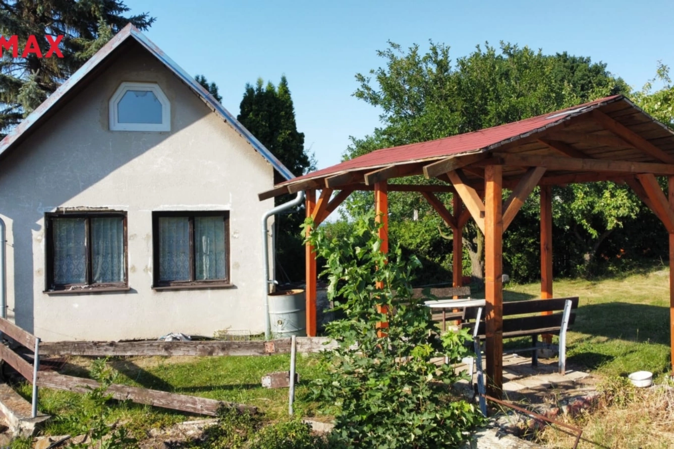 Pozemek nabízí dostatek prostoru pro zahrádku, posezení i drobné hospodaření. Na pozemku je vystavěná nová dřevěná pergola, kde je umístěno venkovní posezení.